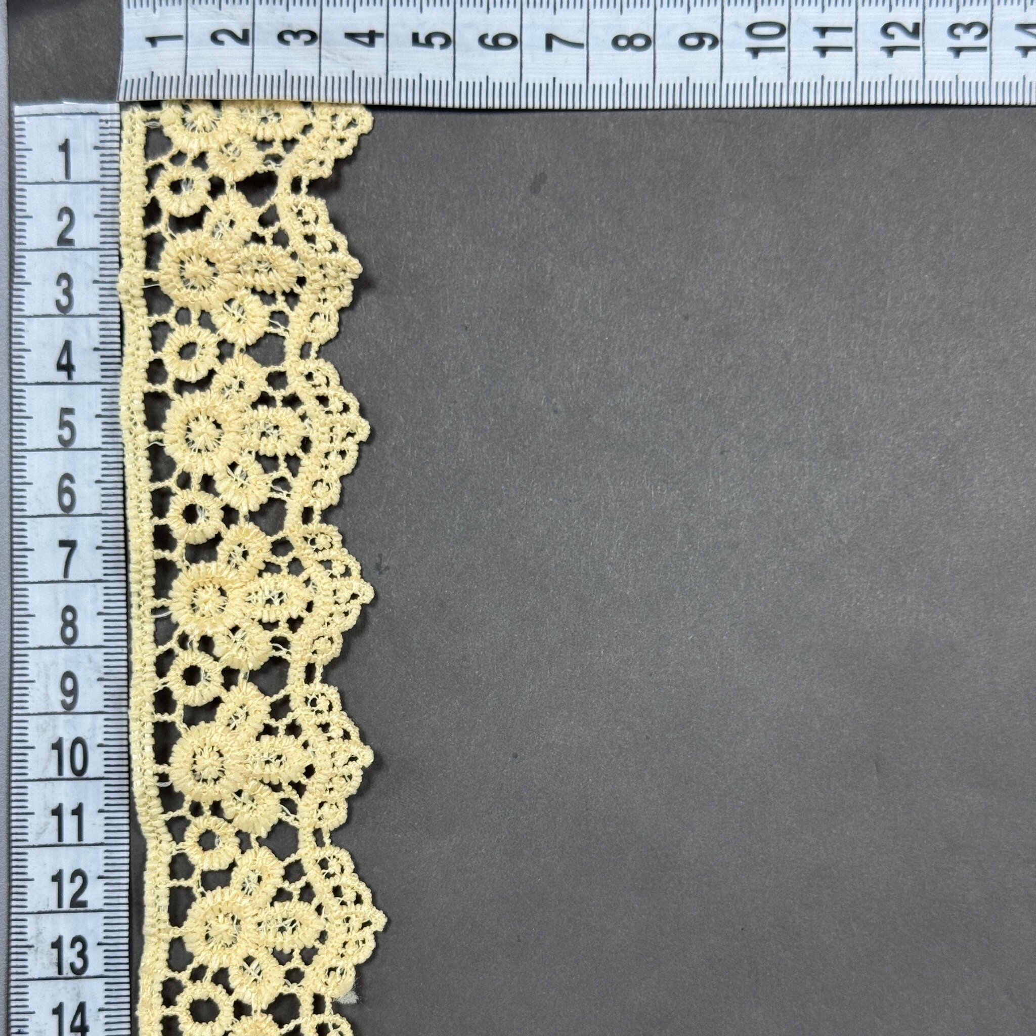 Мереживо поліестер – декоративний матеріал з синтетичного волокна, що відзначається високою зносостійкістю та стабільністю форми. Поліестер не схильний до деформацій, не розтягується і не мнеться, що робить мереживо придатним для частого використання.