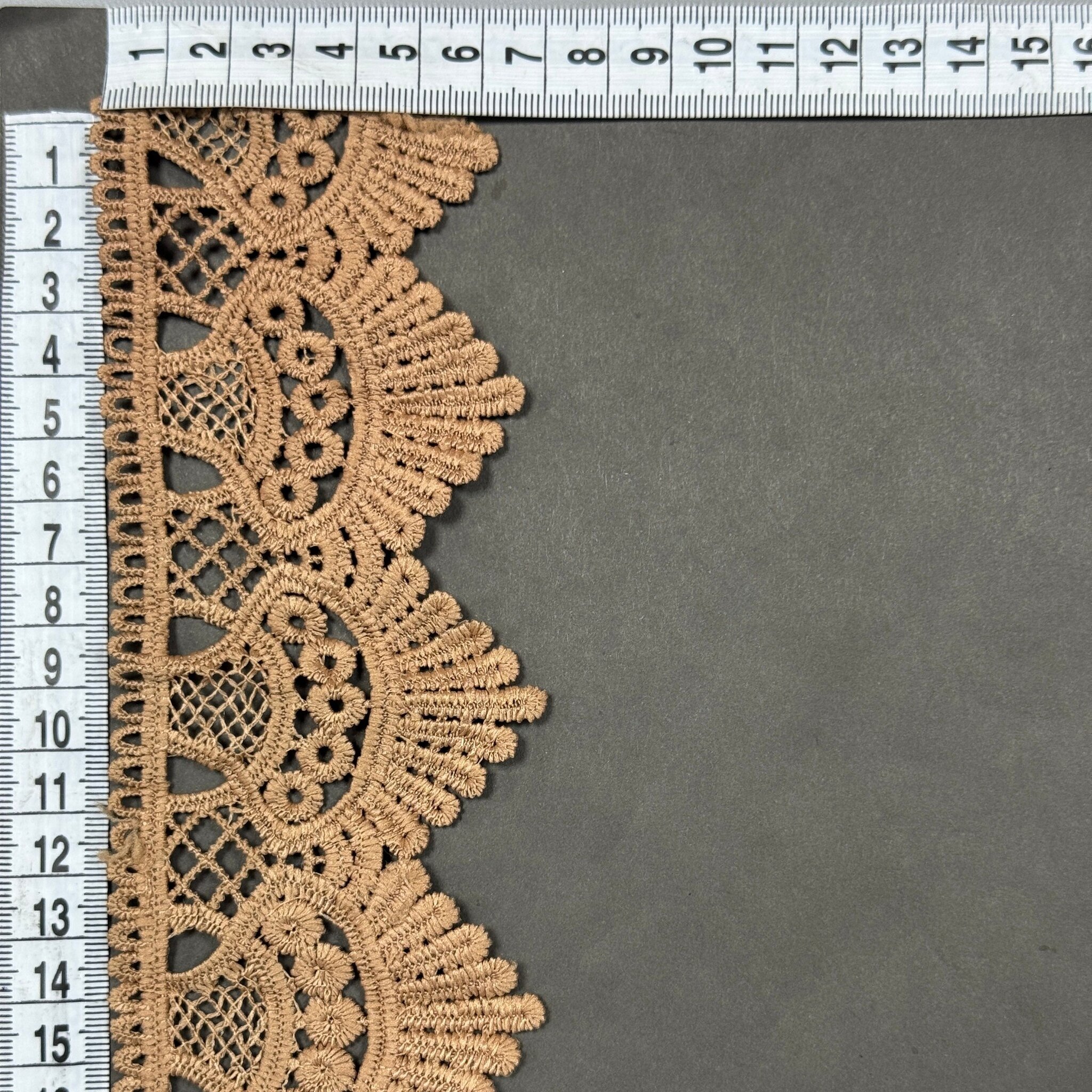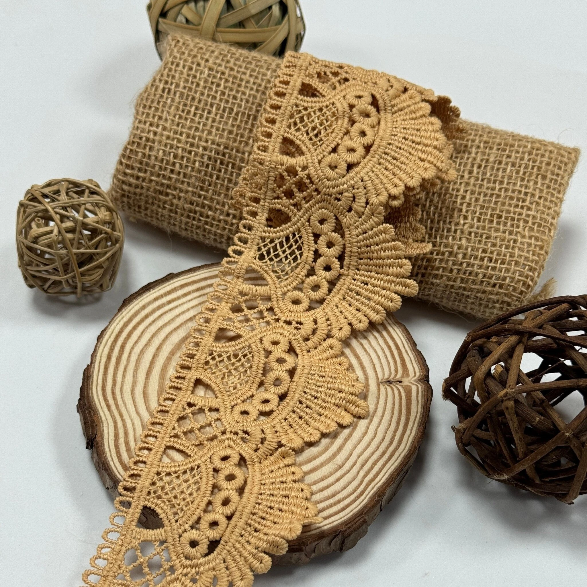Мереживо поліестер – декоративний матеріал з синтетичного волокна, що відзначається високою зносостійкістю та стабільністю форми. Поліестер не схильний до деформацій, не розтягується і не мнеться, що робить мереживо придатним для частого використання.