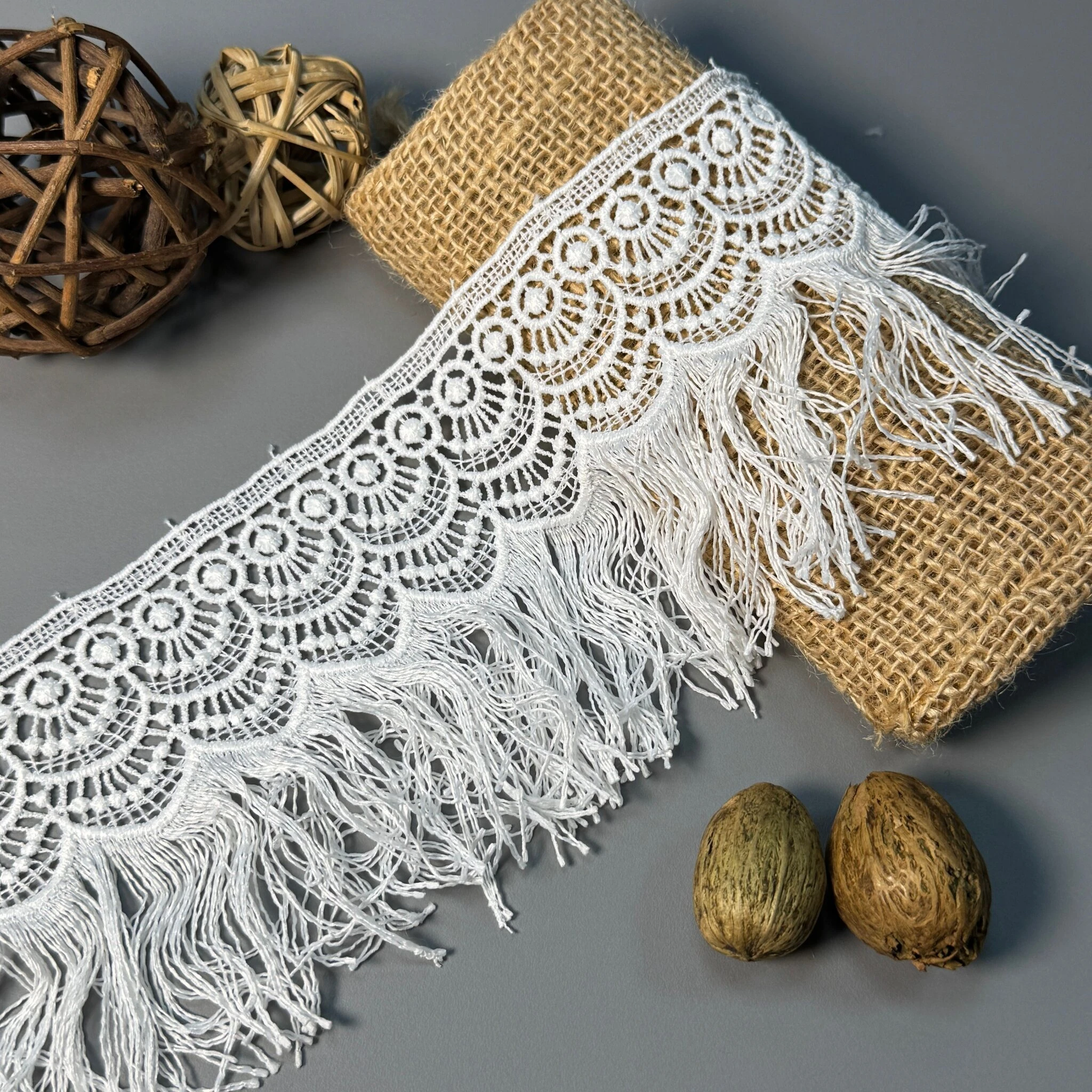 Мереживо поліестер – декоративний матеріал з синтетичного волокна, що відзначається високою зносостійкістю та стабільністю форми. Поліестер не схильний до деформацій, не розтягується і не мнеться, що робить мереживо придатним для частого використання.