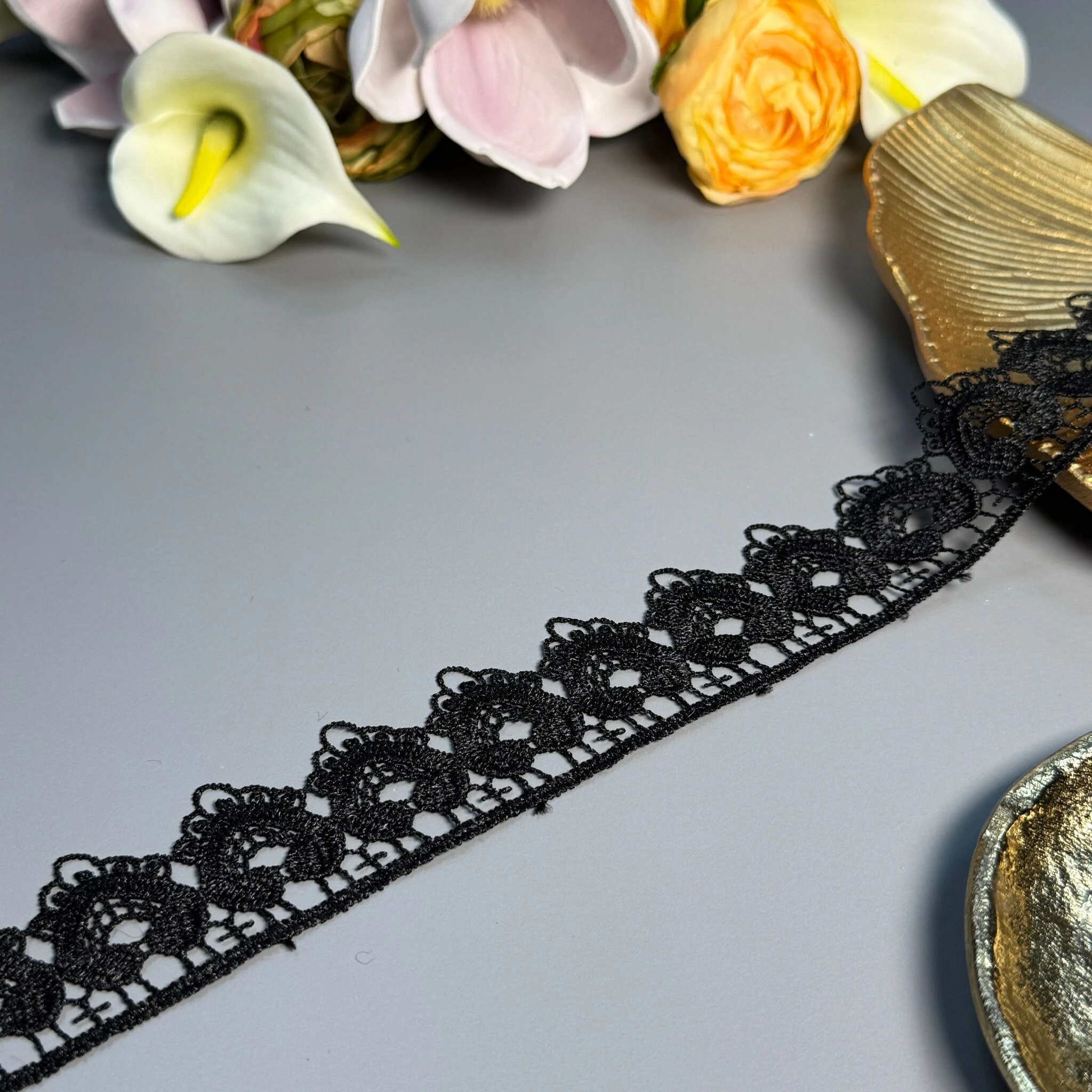 Мереживо поліестер ВВ0162 3,5 см.(30 ярдів/27.3 м.), чорний