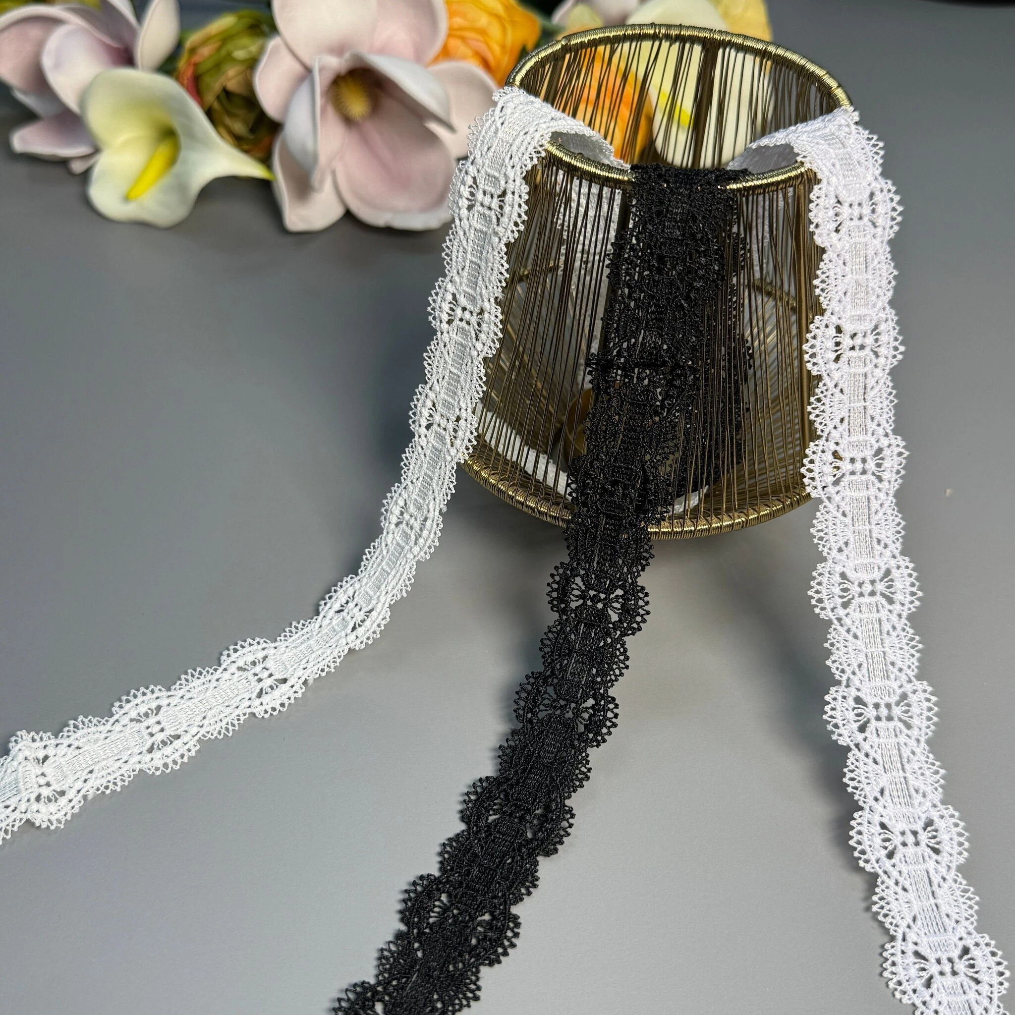 Мереживо поліестер – декоративний матеріал з синтетичного волокна, що відзначається високою зносостійкістю та стабільністю форми. Поліестер не схильний до деформацій, не розтягується і не мнеться, що робить мереживо придатним для частого використання.