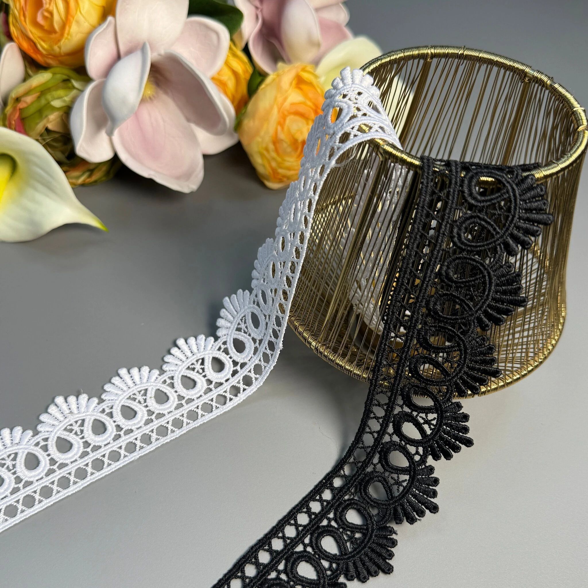 Мереживо поліестер – декоративний матеріал з синтетичного волокна, що відзначається високою зносостійкістю та стабільністю форми. Поліестер не схильний до деформацій, не розтягується і не мнеться, що робить мереживо придатним для частого використання.