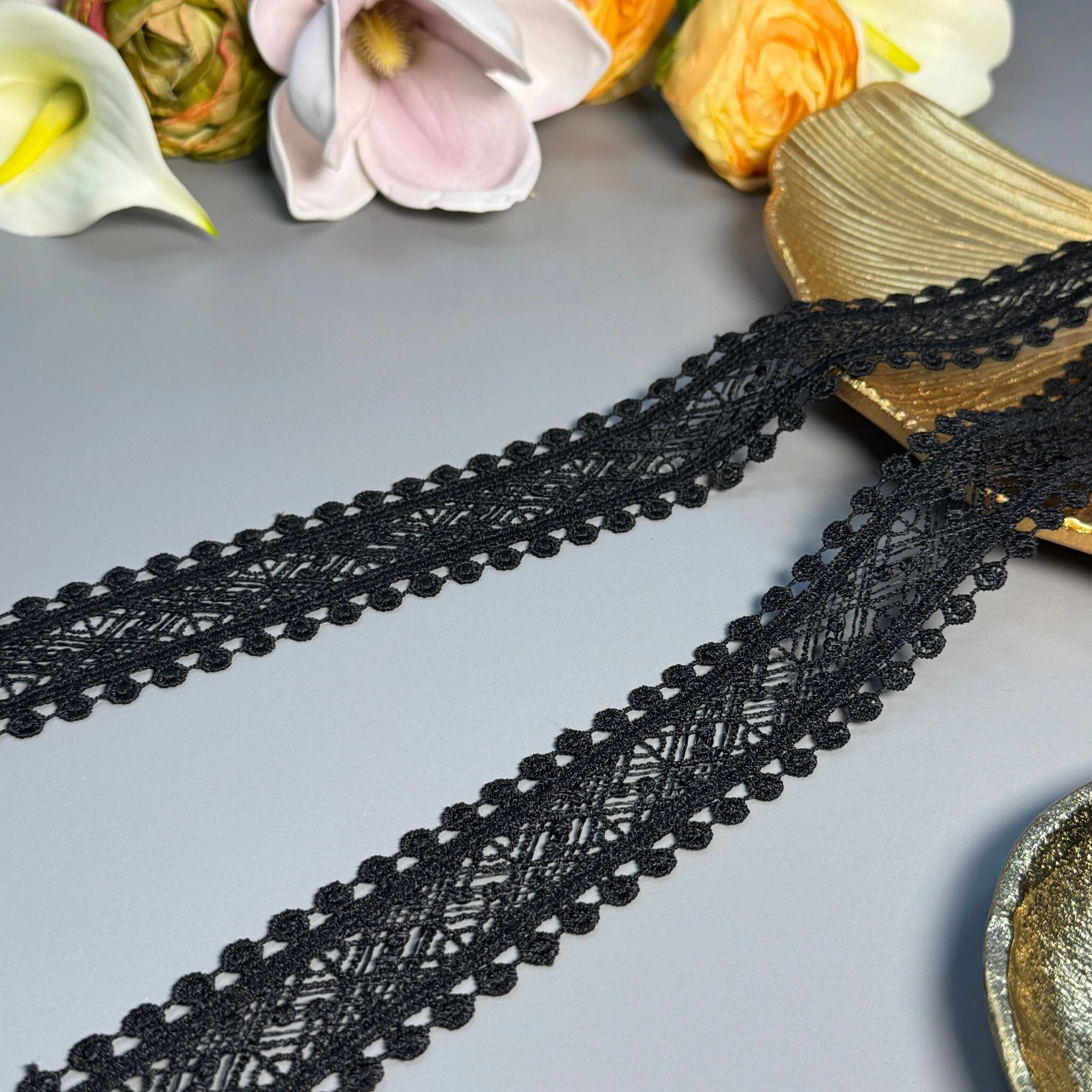Мереживо поліестер ВВ104631 3,5 см.(30 ярдів/27.3 м.), чорний