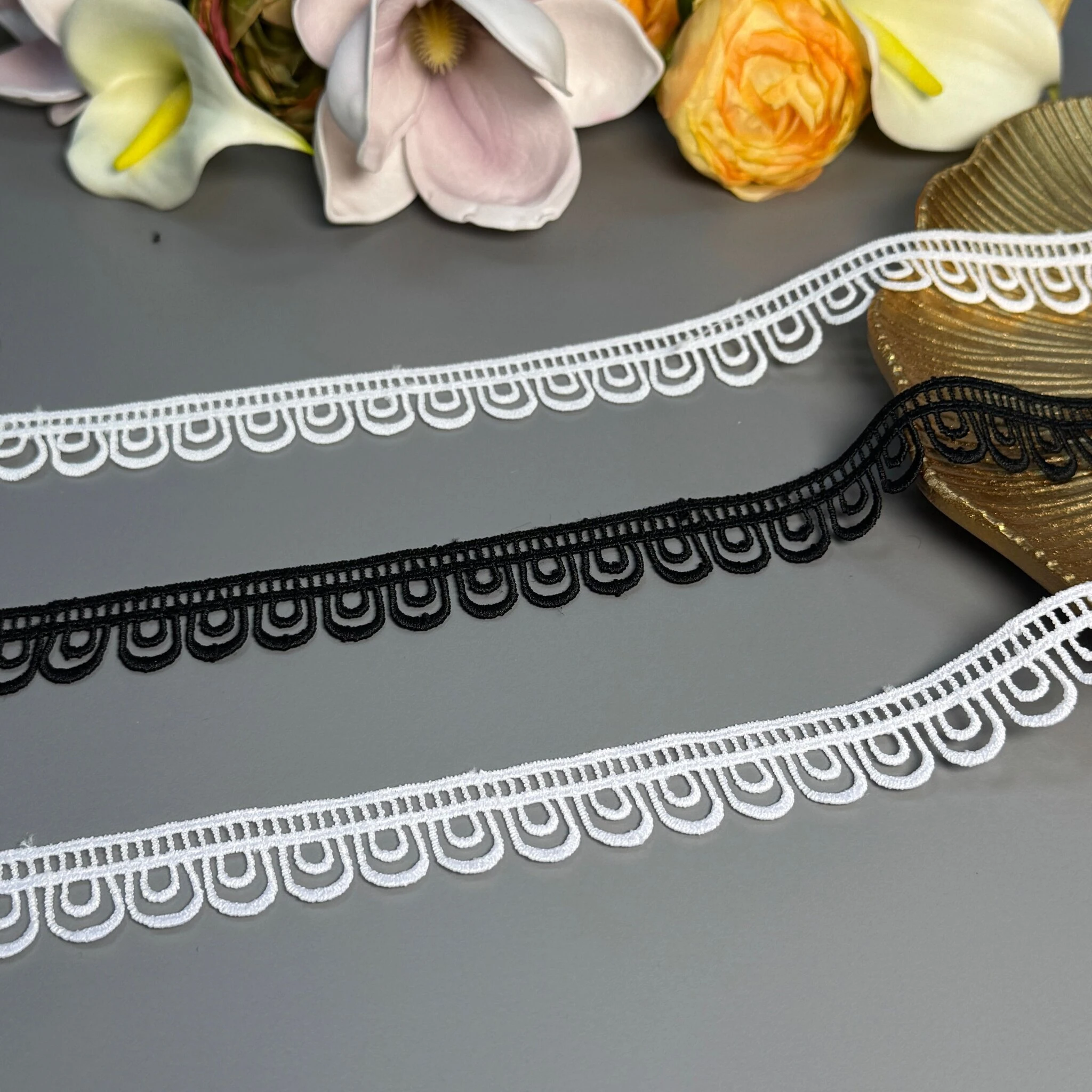 Мереживо поліестер – декоративний матеріал з синтетичного волокна, що відзначається високою зносостійкістю та стабільністю форми. Поліестер не схильний до деформацій, не розтягується і не мнеться, що робить мереживо придатним для частого використання.