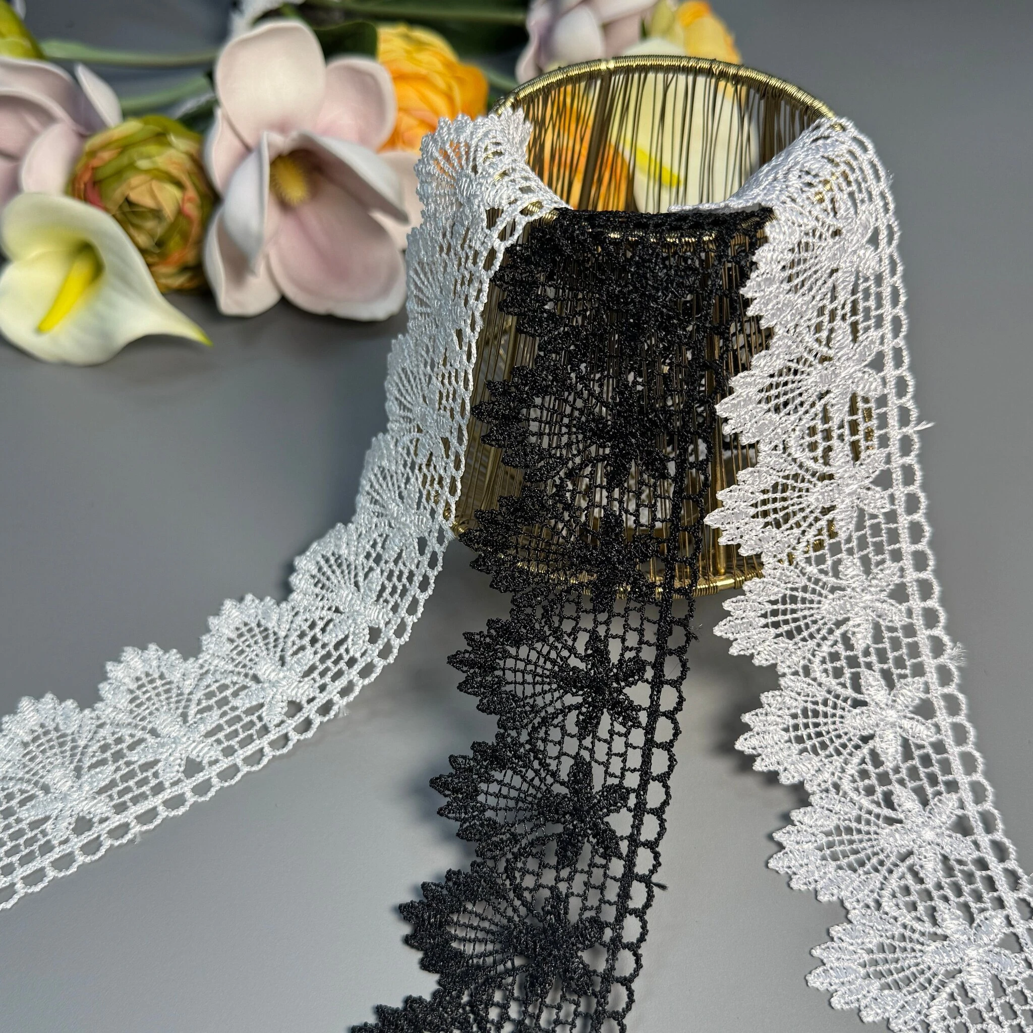Мереживо поліестер – декоративний матеріал з синтетичного волокна, що відзначається високою зносостійкістю та стабільністю форми. Поліестер не схильний до деформацій, не розтягується і не мнеться, що робить мереживо придатним для частого використання.
