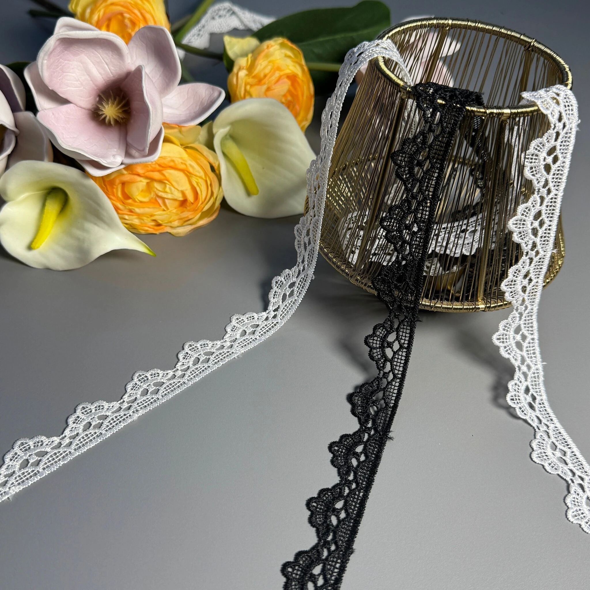 Мереживо поліестер – декоративний матеріал з синтетичного волокна, що відзначається високою зносостійкістю та стабільністю форми. Поліестер не схильний до деформацій, не розтягується і не мнеться, що робить мереживо придатним для частого використання.