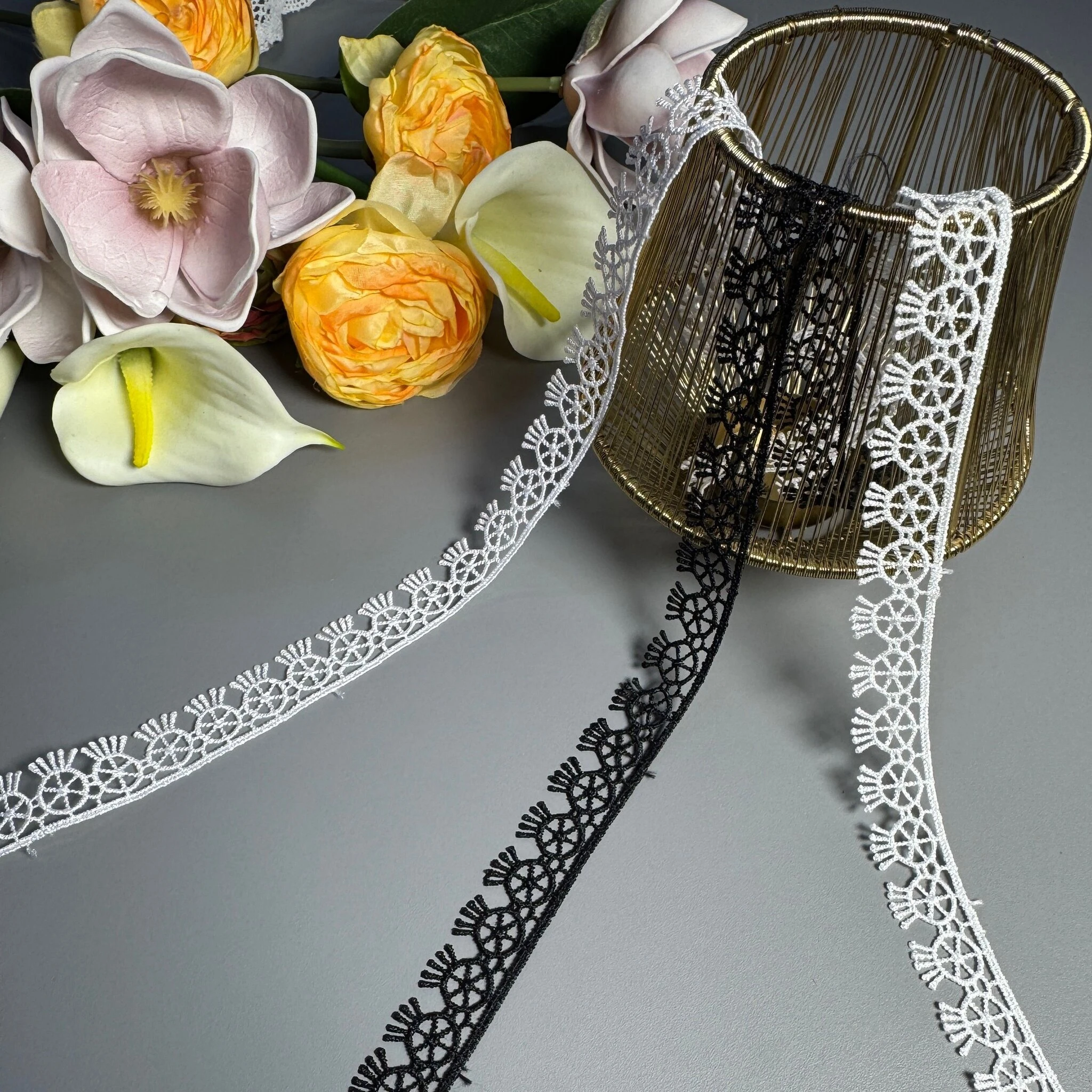 Мереживо поліестер – декоративний матеріал з синтетичного волокна, що відзначається високою зносостійкістю та стабільністю форми. Поліестер не схильний до деформацій, не розтягується і не мнеться, що робить мереживо придатним для частого використання.