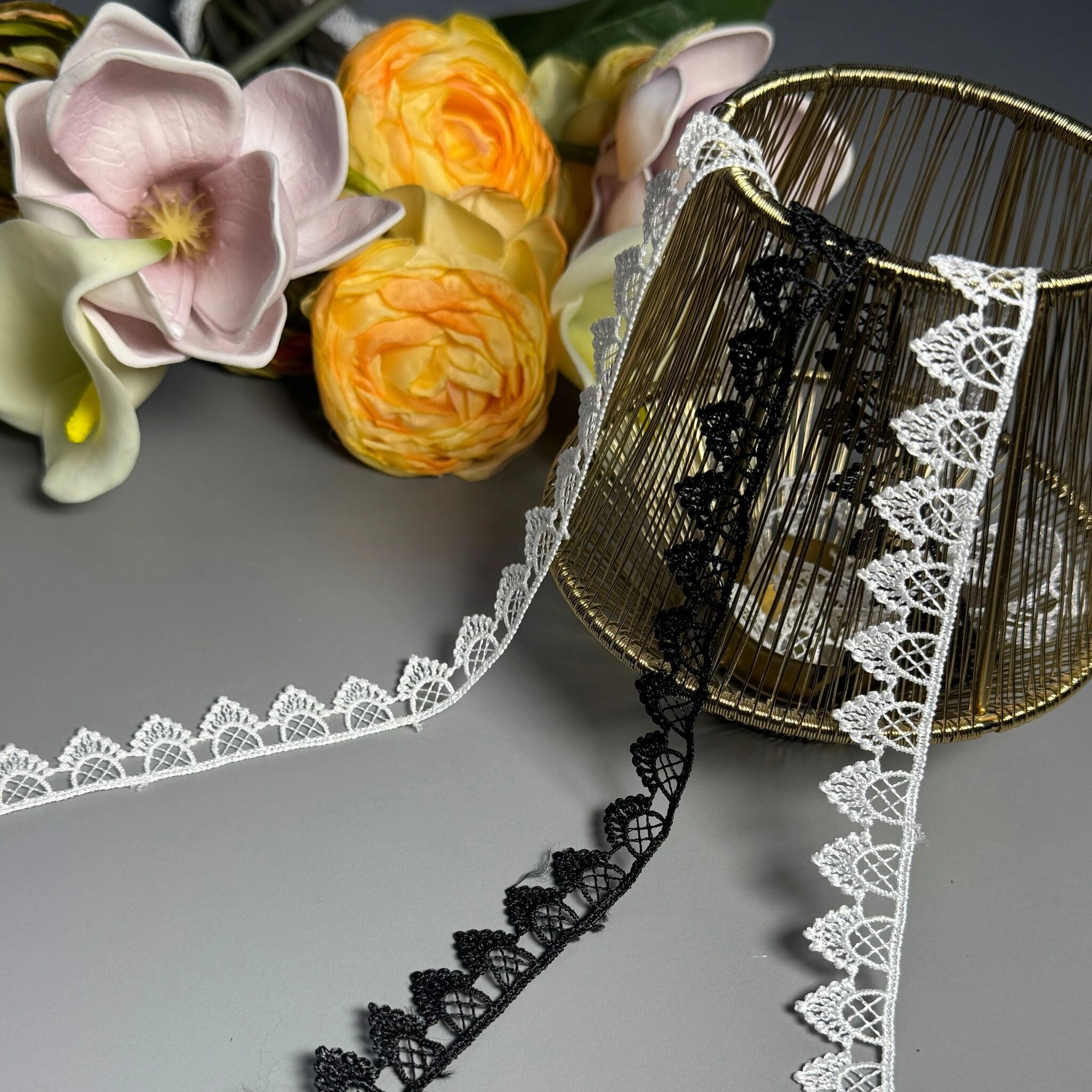 Мереживо поліестер – декоративний матеріал з синтетичного волокна, що відзначається високою зносостійкістю та стабільністю форми. Поліестер не схильний до деформацій, не розтягується і не мнеться, що робить мереживо придатним для частого використання.