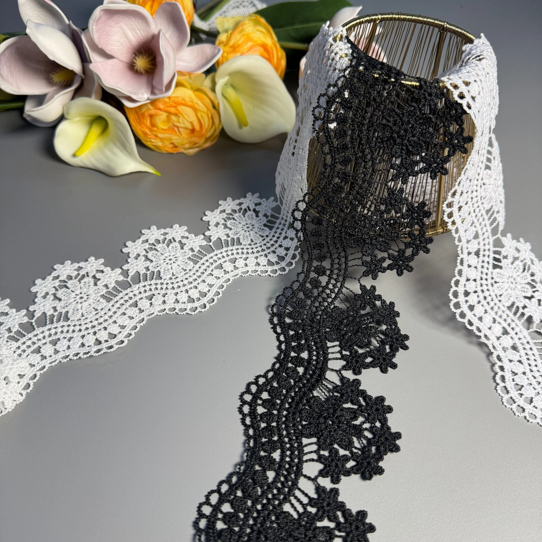 Мереживо поліестер – декоративний матеріал з синтетичного волокна, що відзначається високою зносостійкістю та стабільністю форми. Поліестер не схильний до деформацій, не розтягується і не мнеться, що робить мереживо придатним для частого використання.