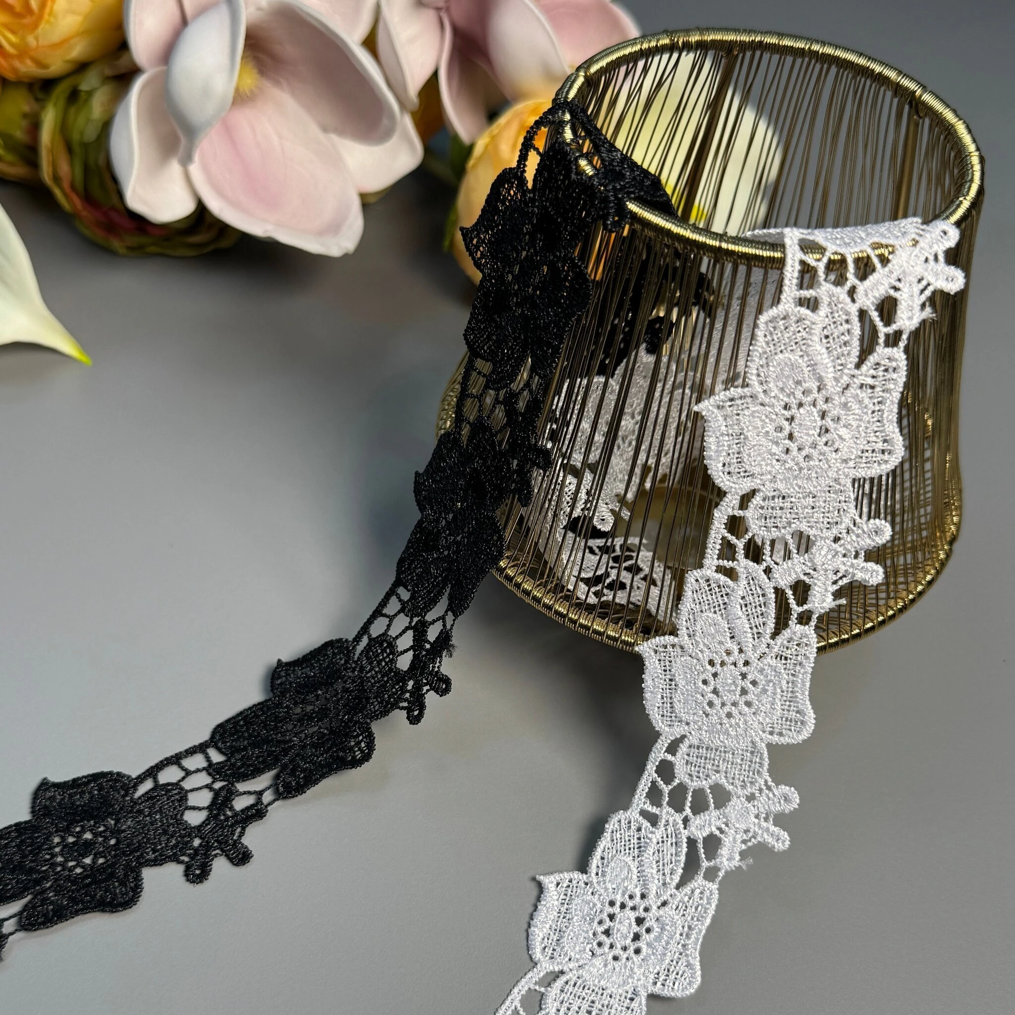 Мереживо поліестер – декоративний матеріал з синтетичного волокна, що відзначається високою зносостійкістю та стабільністю форми. Поліестер не схильний до деформацій, не розтягується і не мнеться, що робить мереживо придатним для частого використання.