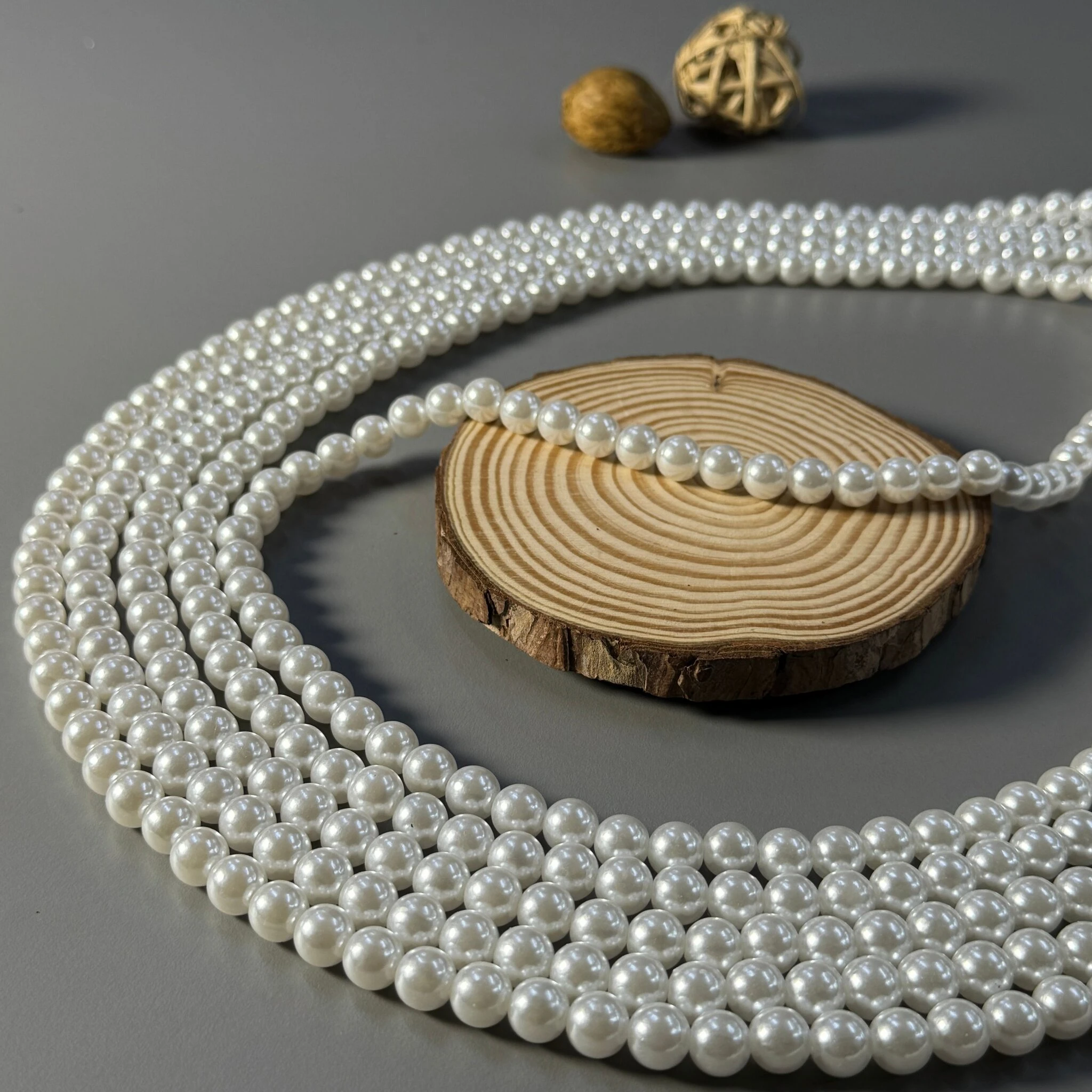 Елегантні перли на нитці — це стильний та практичний декоративний елемент, який чудово підходить для створення прикрас, оздоблення одягу, аксесуарів і декору.