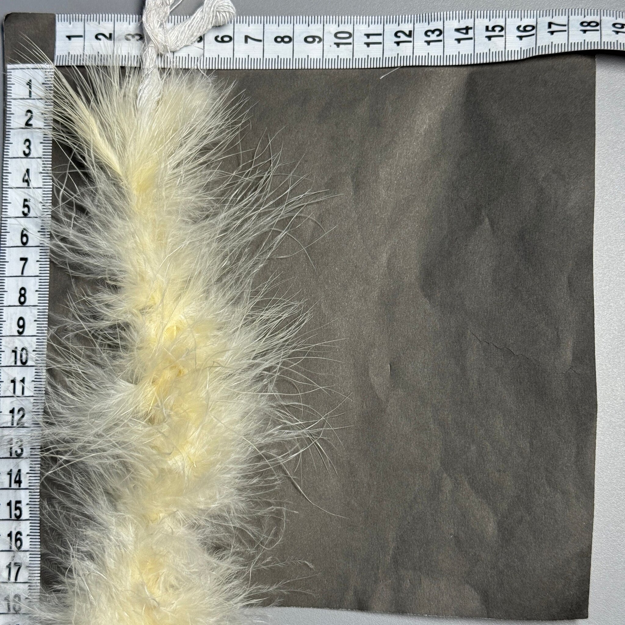 Пір’я пришите на зручну стрічку, що полегшує роботу з ним. Легко кроїться, добре поєднується з різними тканинами та матеріалами.