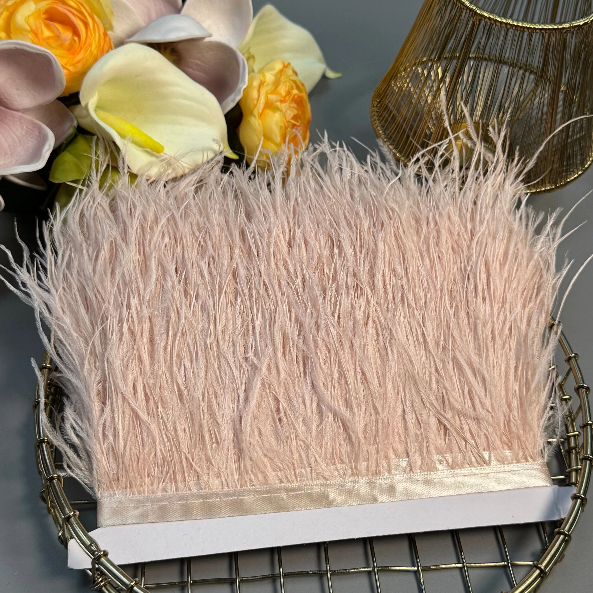 Пір’я на тасьмі 7–10 см, 10 метрів – декоративна стрічка з натуральними або штучними пір’ям довжиною 7–10 см, змонтованими на текстильній основі.