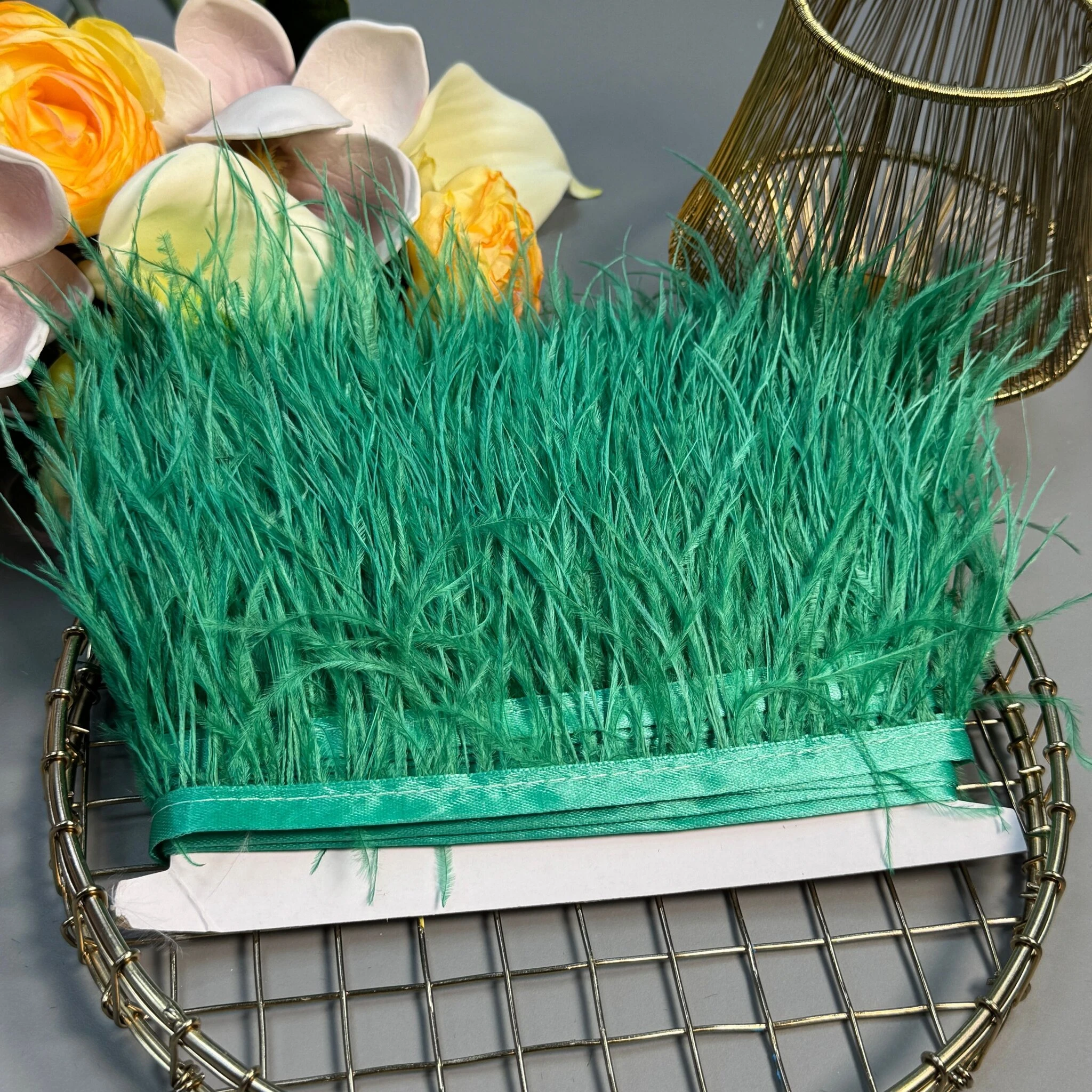 Пір’я на тасьмі 7–10 см, 10 метрів – декоративна стрічка з натуральними або штучними пір’ям довжиною 7–10 см, змонтованими на текстильній основі.