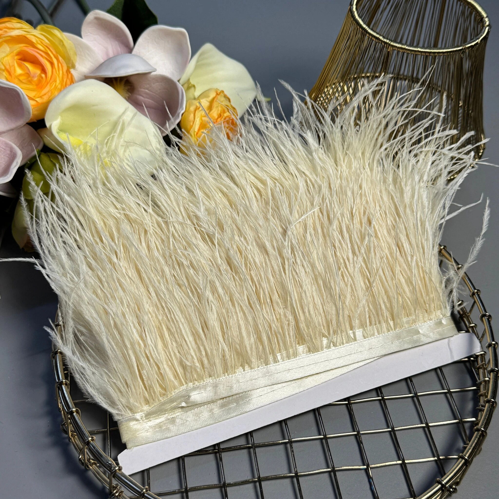 Пір'я на тасьмі 7-10 см (10 метрів), світлий молочний