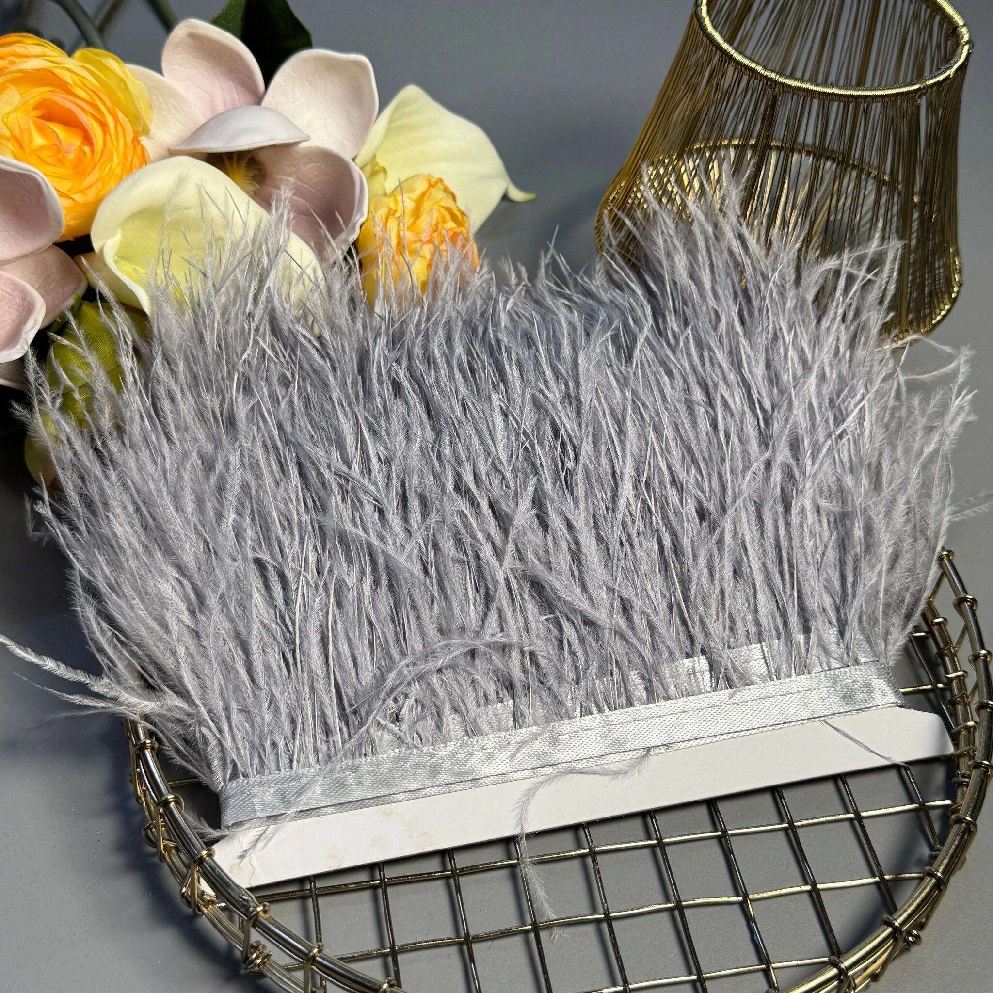 Пір'я на тасьмі 7-10 см (10 метрів), світлий сірий