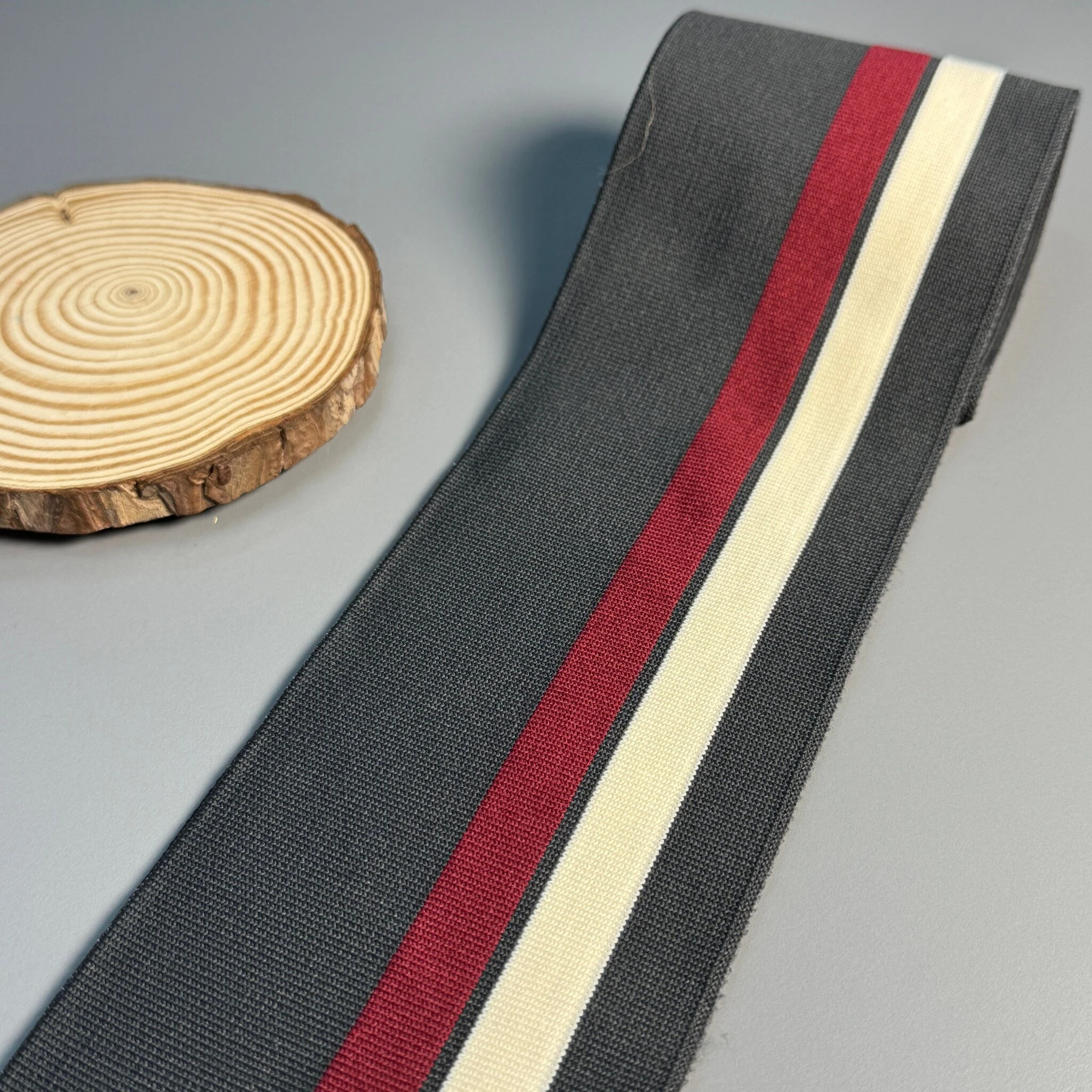 Пояс трикотажний довяз D#4 спорт (8.5см*90 см), темний сірий+червоний+молочний
