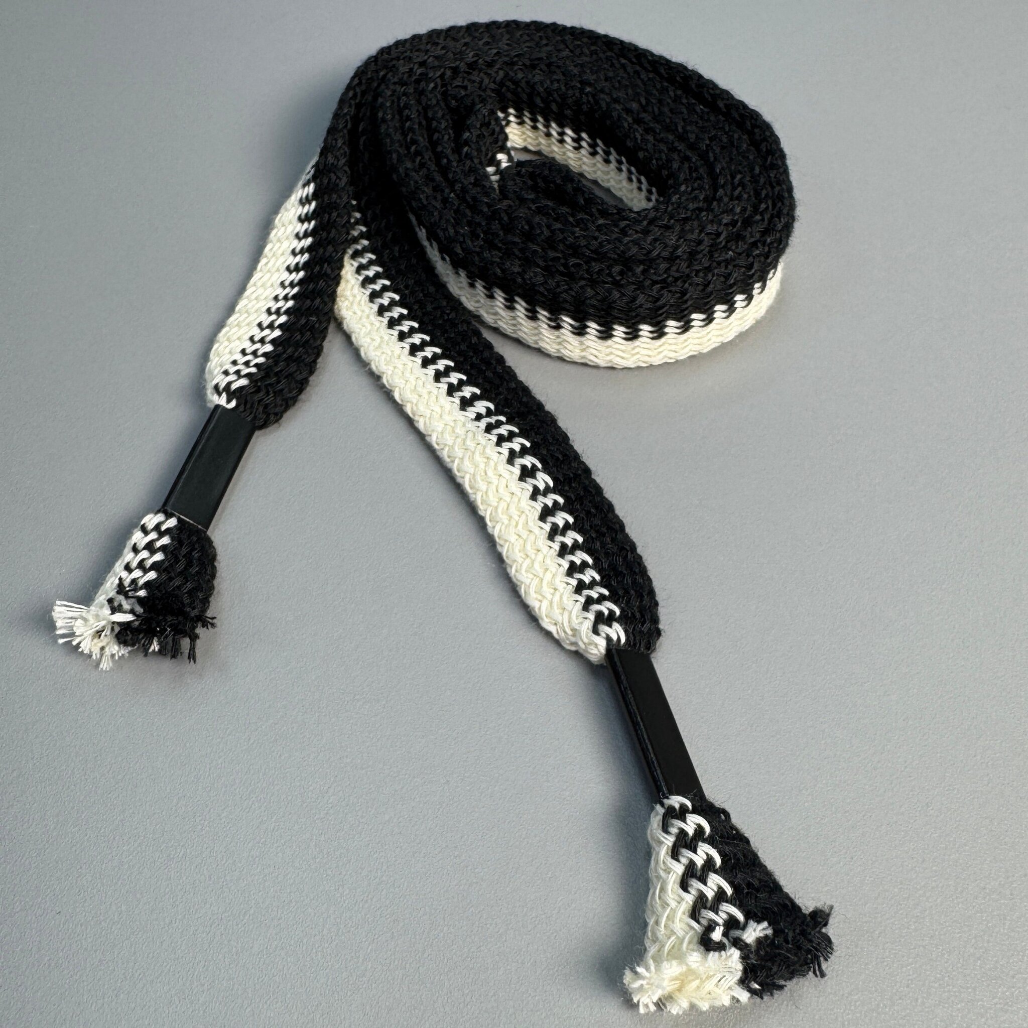 Шнурок широкий зіг-заг (140 см), чорний + білий