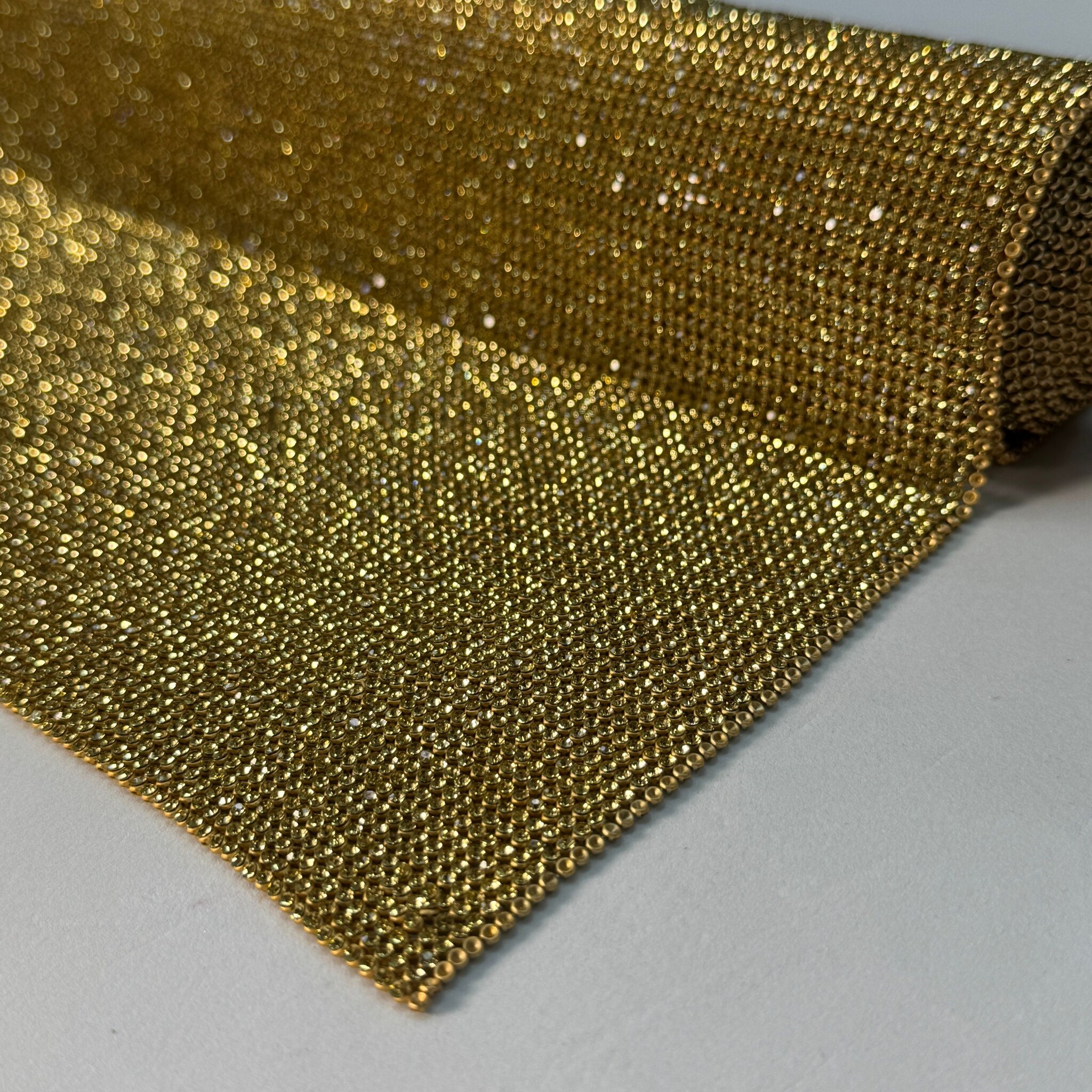Стрази полотно пришив 36×120 см – декоративний матеріал, покритий блискучими камінцями, який дозволяє швидко та ефектно прикрасити одяг, аксесуари або декоративні вироби. Камені рівномірно розташовані на тканині, створюючи яскравий і святковий блиск.