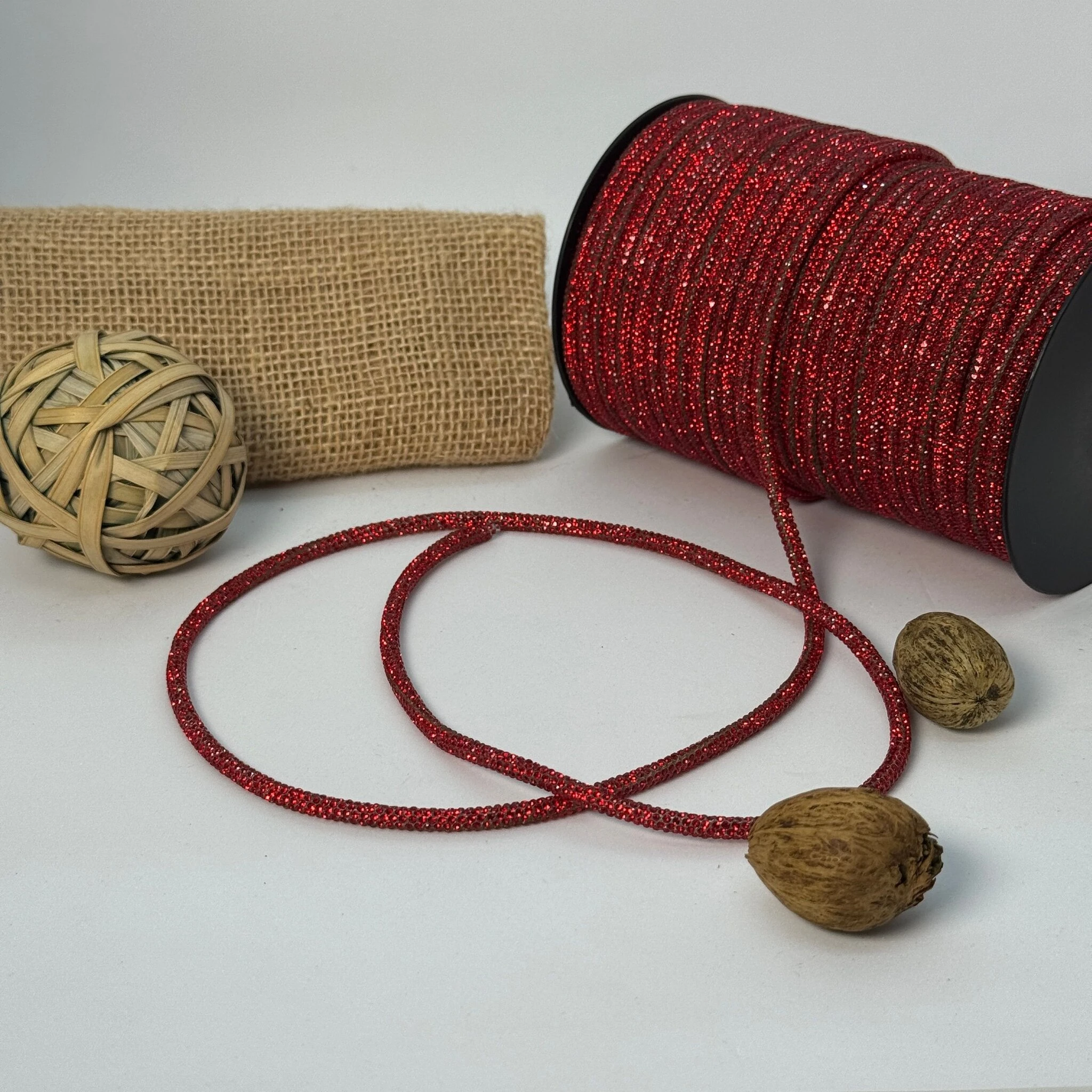 Стразовий шнур 4 мм 8 рядів (50 м), червоний RED