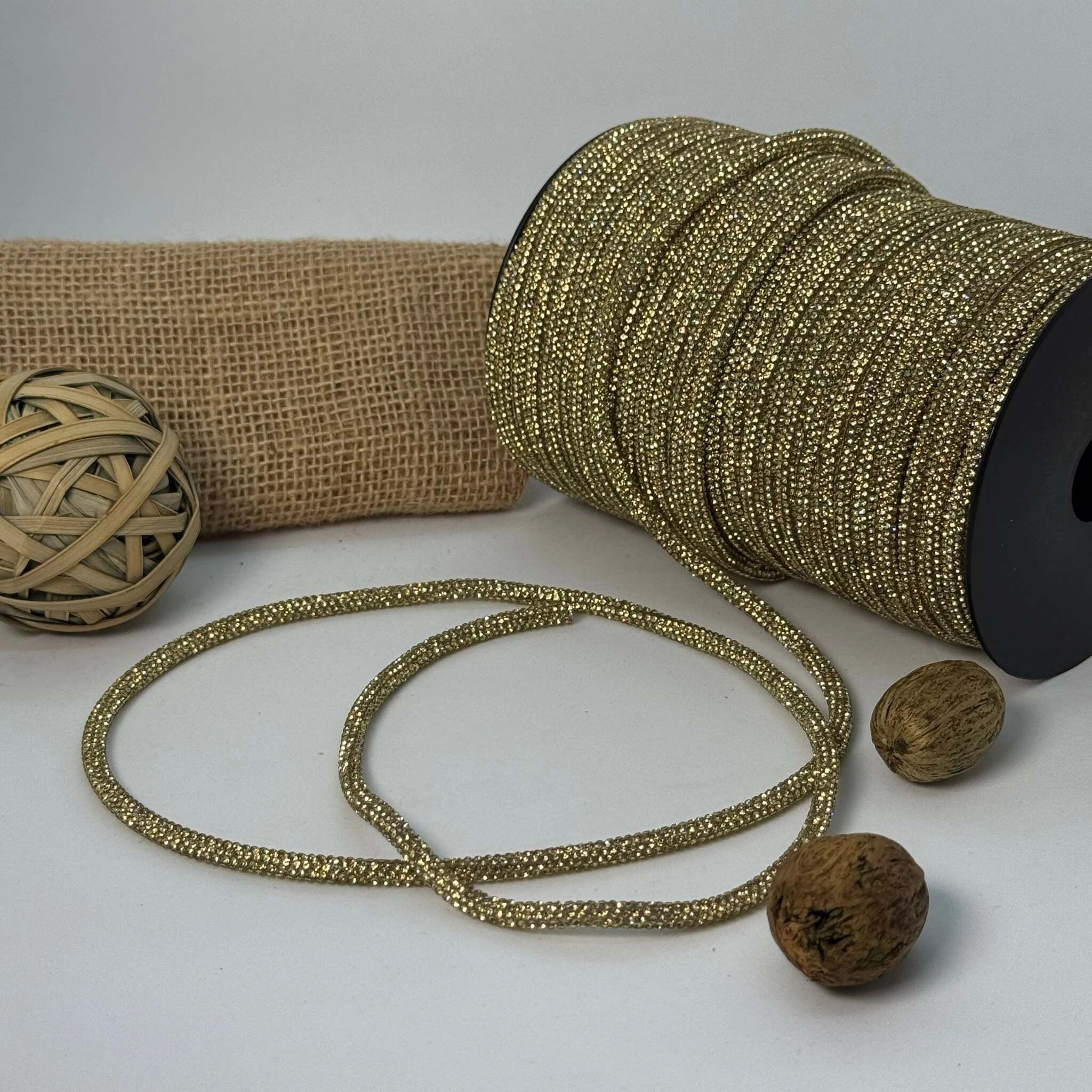Стразовий шнур 4 мм, 8 рядів, 50 м – декоративний елемент із восьмирядним розташуванням блискучих камінців діаметром 4 мм на міцному шнурі. Ідеально підходить для прикрашання одягу, аксесуарів та хендмейд виробів, створюючи насичений і ефектний блиск.