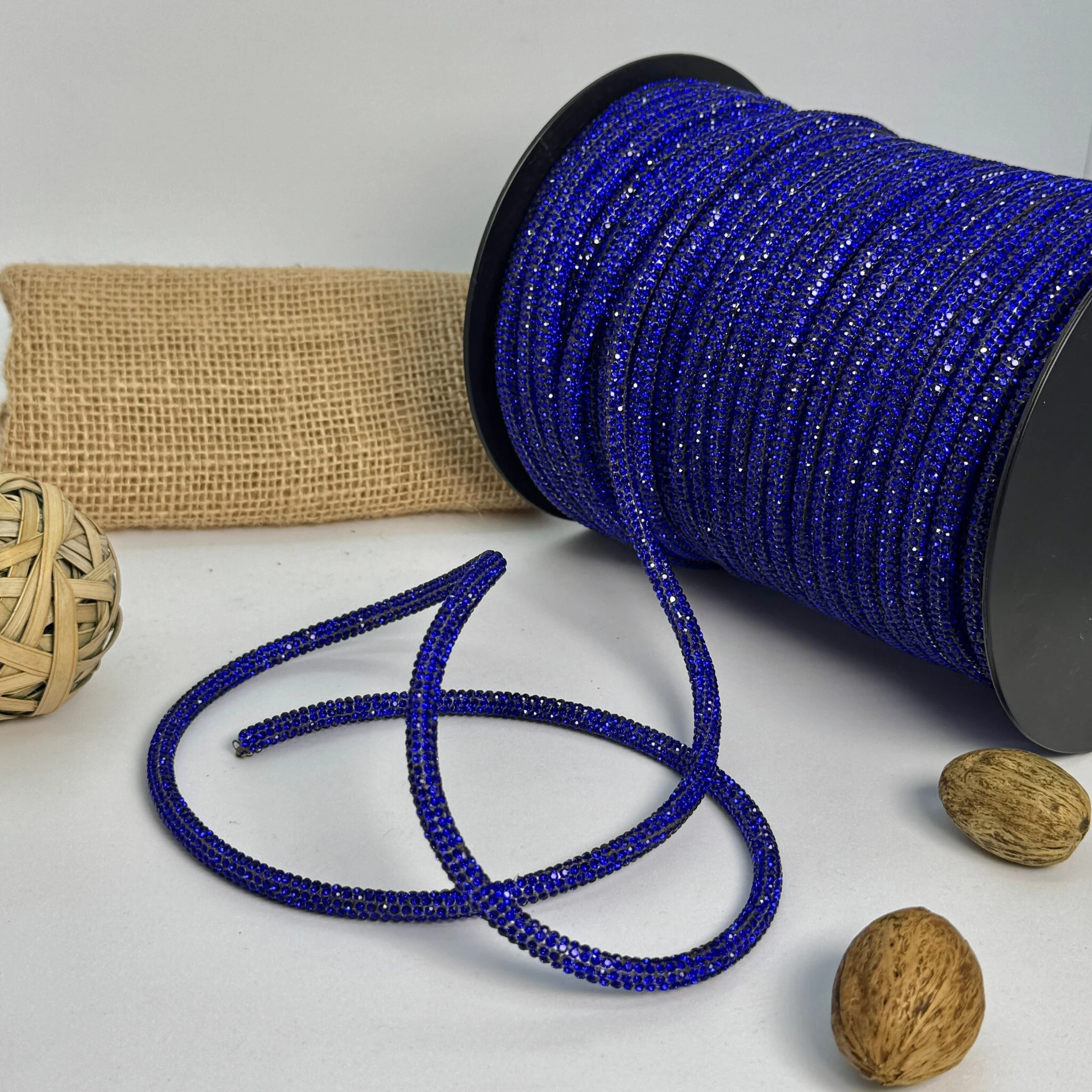 Стразовий шнур 6 мм 8 рядів, 50 м – декоративний елемент із восьмирядним розташуванням блискучих камінців діаметром 6 мм на міцному шнурі.