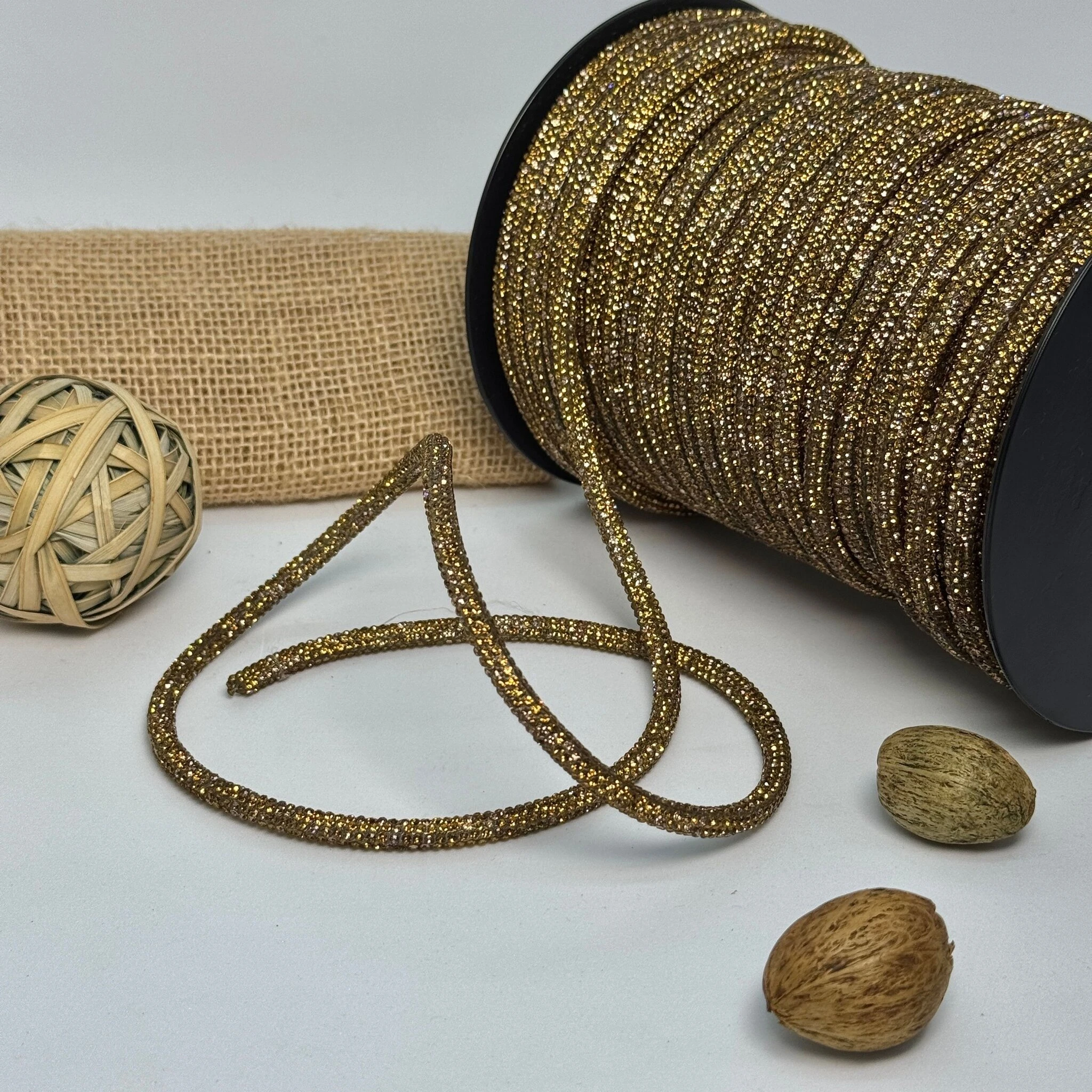 Стразовий шнур 6 мм 8 рядів (50 м), золото