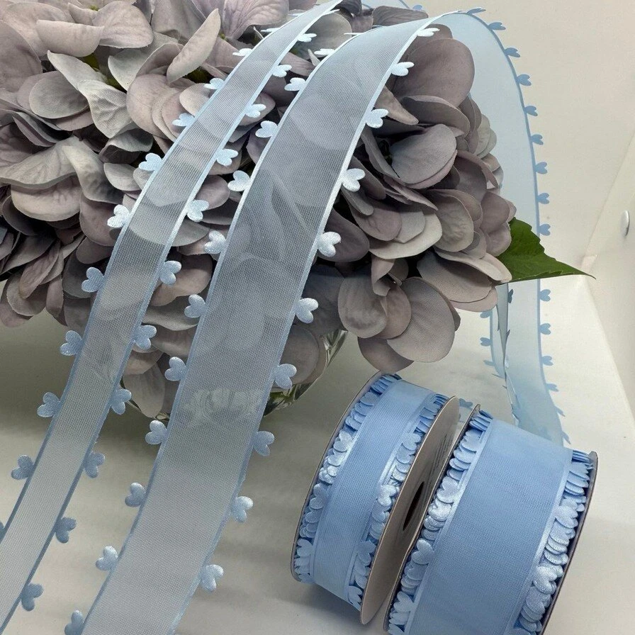 Стрічка декоративна з сердечками 4 см (5*20 ярдів/18,28 м.), небесний