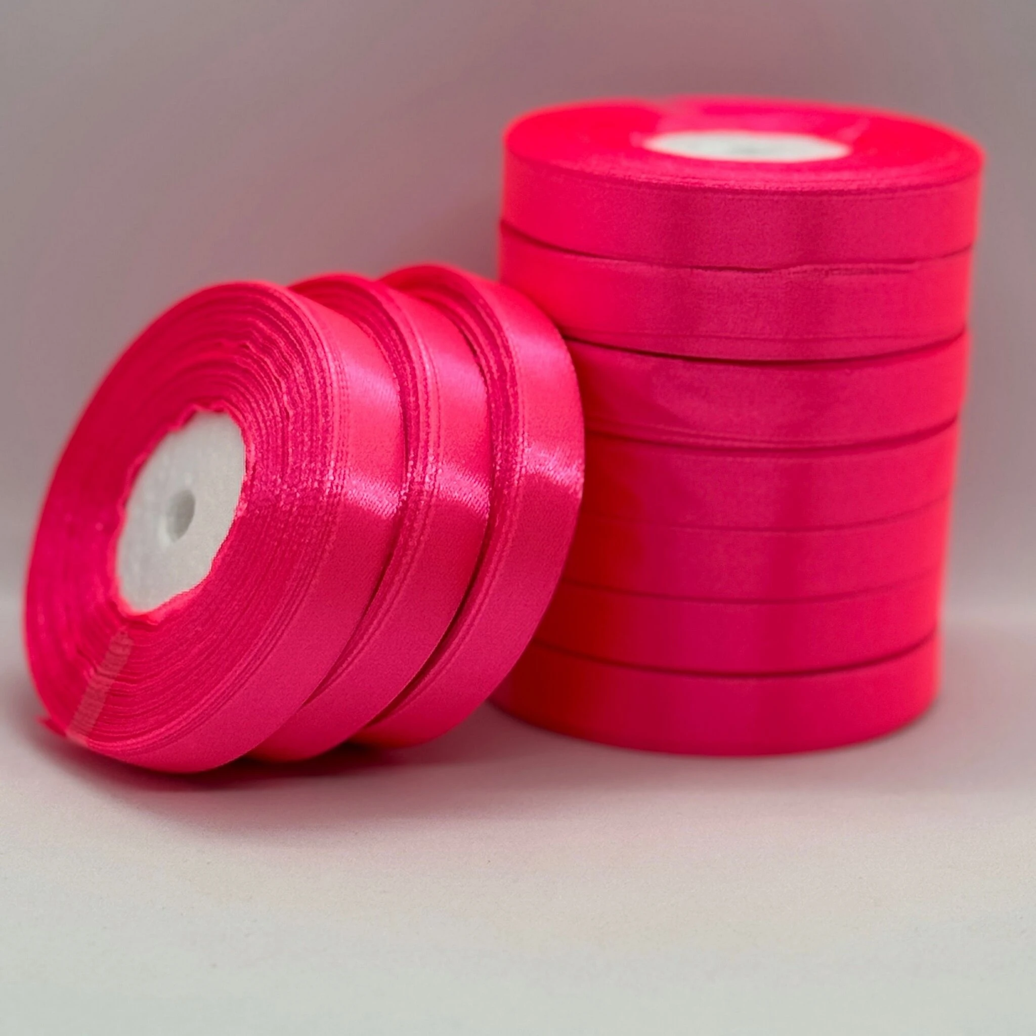 Стрічка атласна 1.2 см (10*36 ярдів), 14 неон рожевий