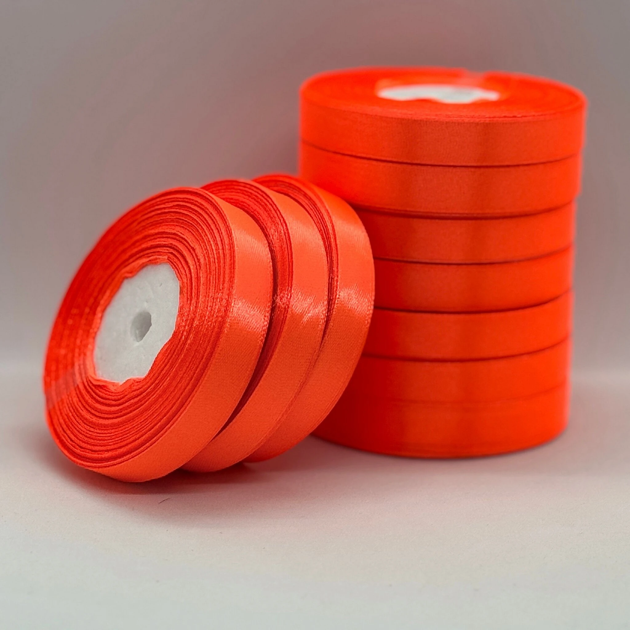 Стрічка атласна 1.2 см (10*36 ярдів), 23 неон помаранчевий
