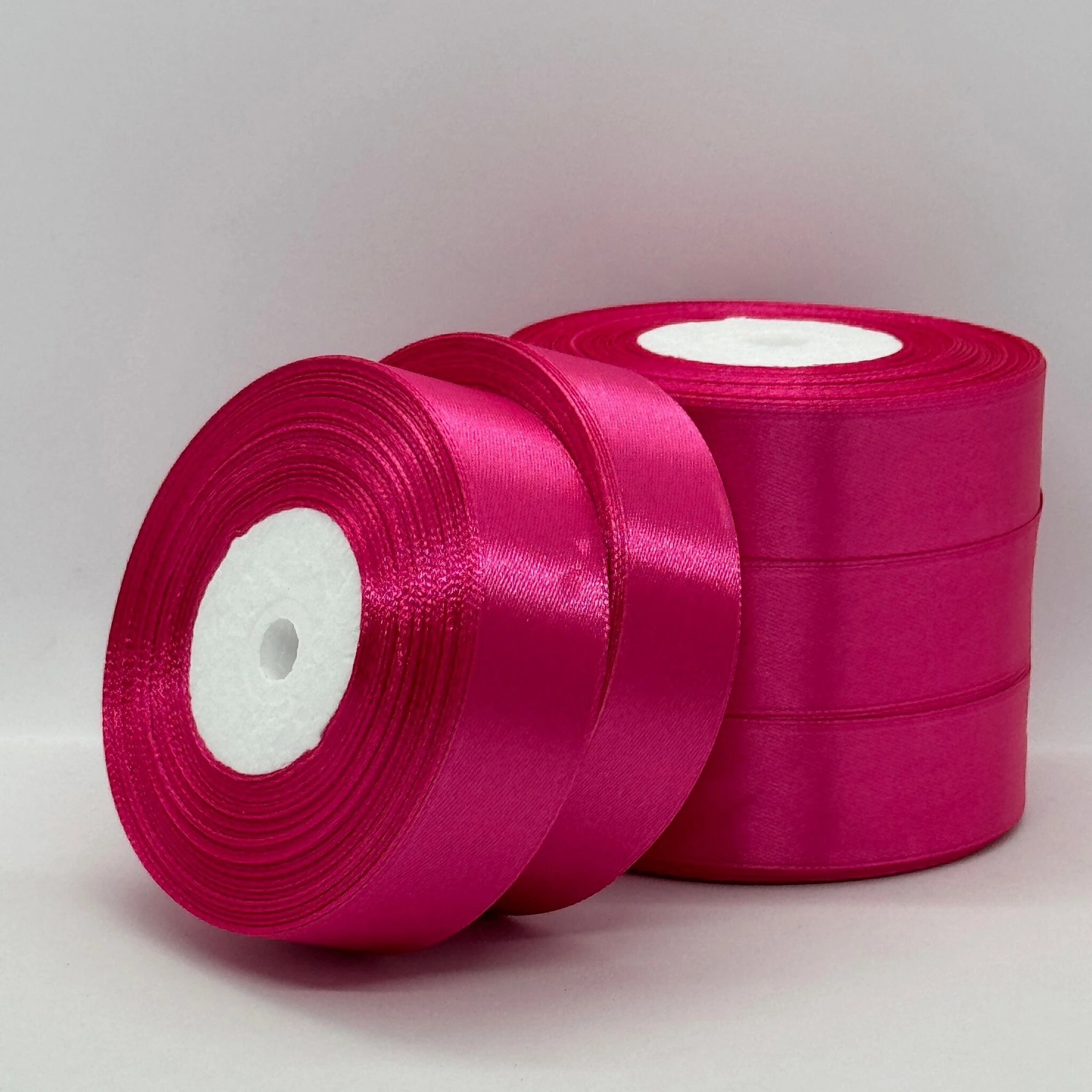 Стрічка атласна 2.5 см (5*36 ярдів), 130 горячо-рожевий