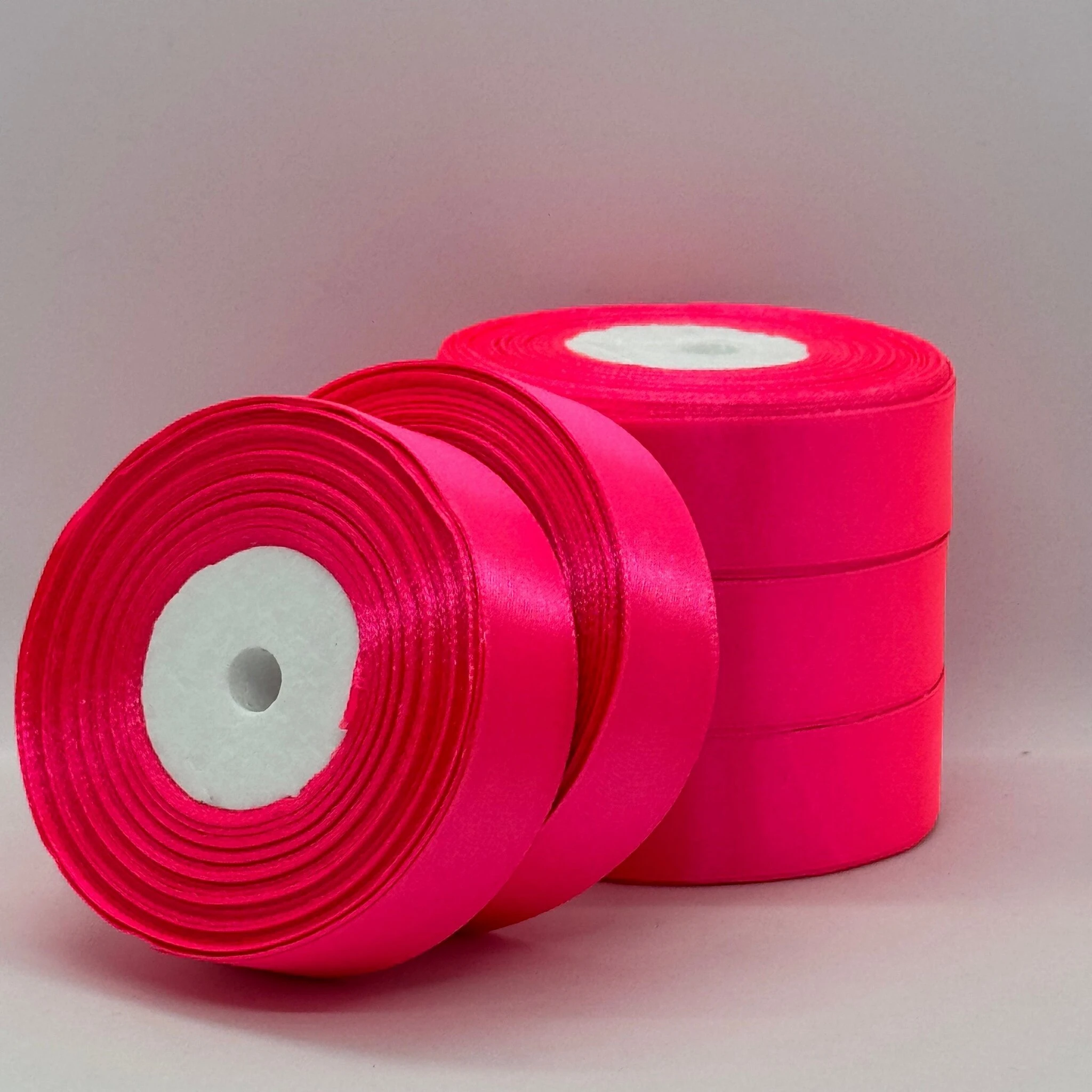 Стрічка атласна 2.5 см (5*36 ярдів), 14 неон рожевий