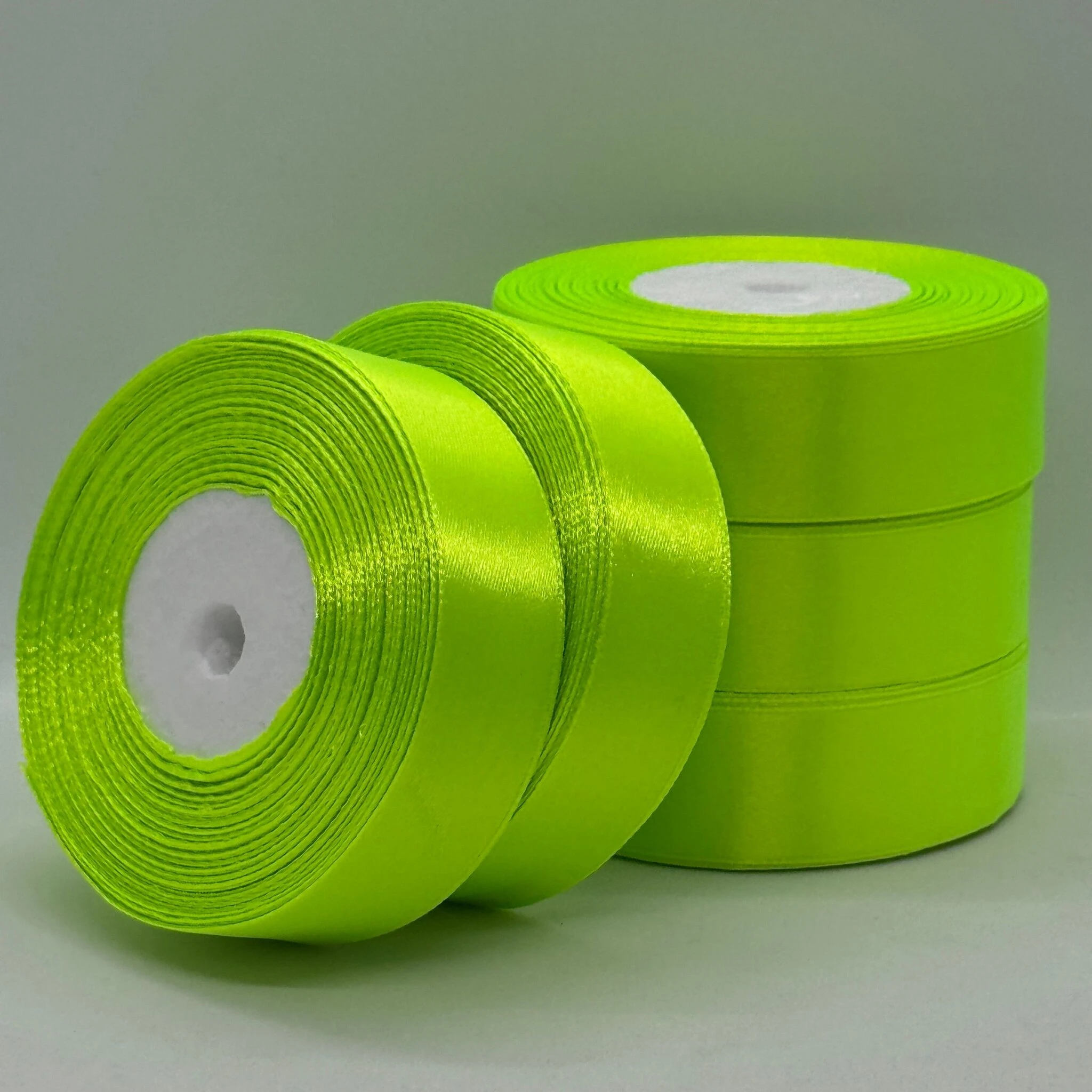 Стрічка атласна 2.5 см (5*36 ярдів), 57 неон салатовий