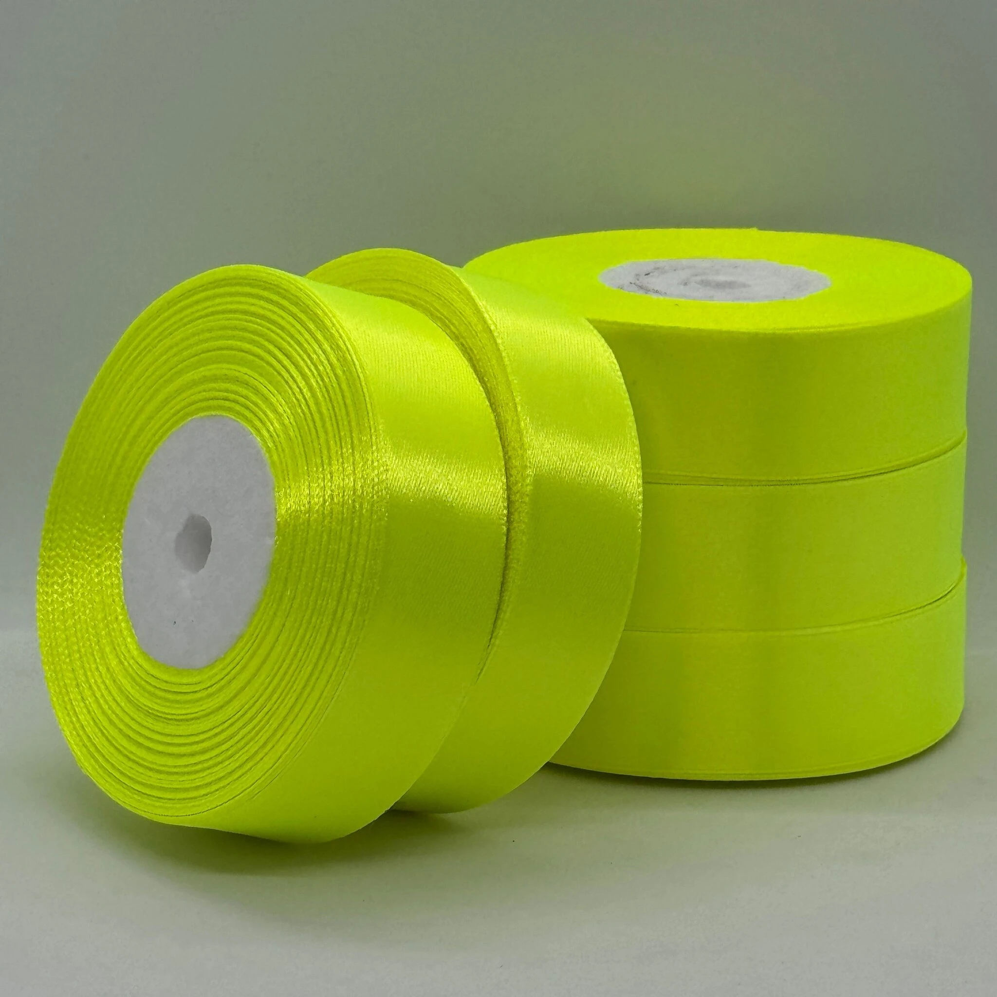 Стрічка атласна 2.5 см (5*36 ярдів), 58 неон жовтий