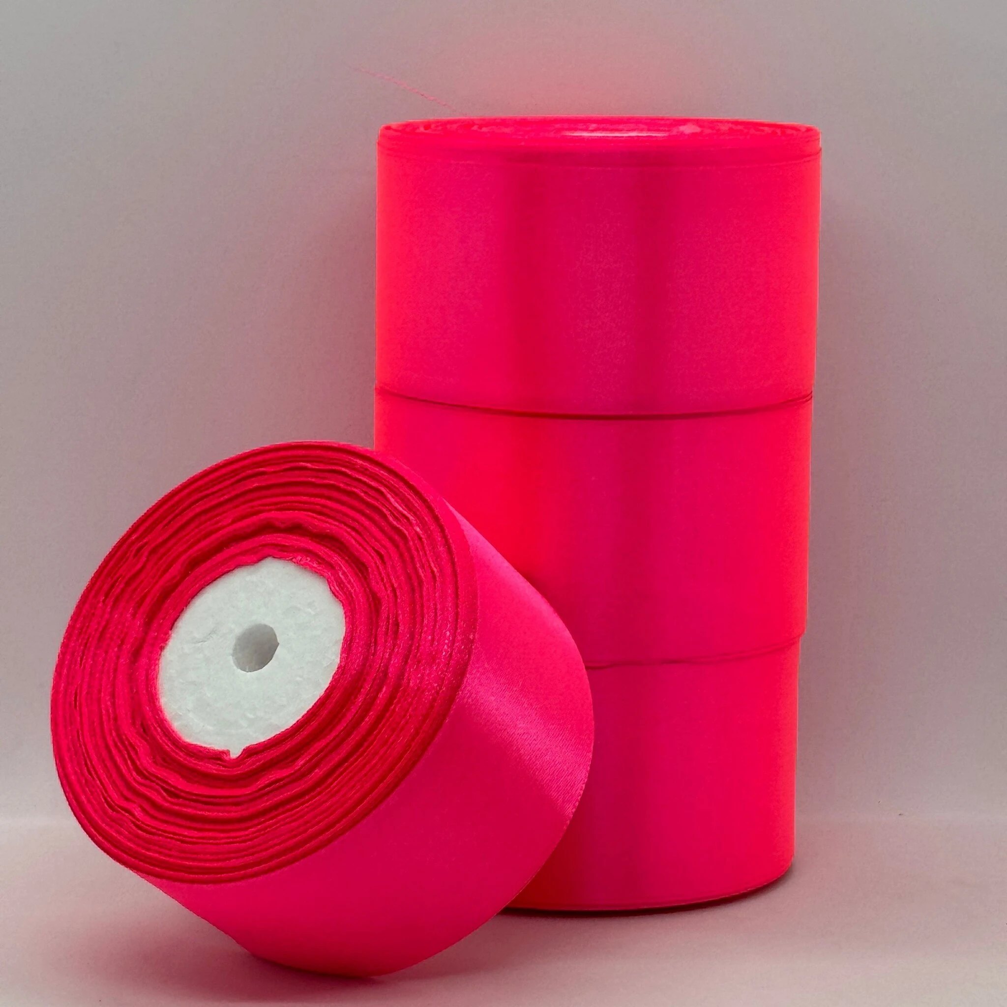Стрічка атласна 5 см (4*36 ярдів), 14 неон рожевий