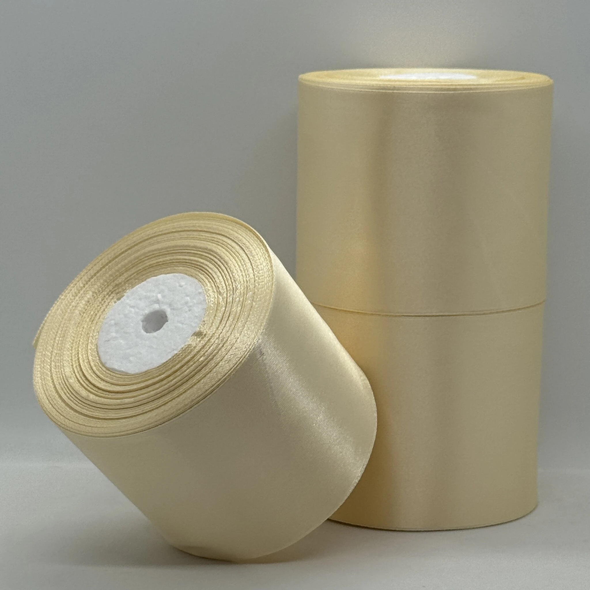 Стрічка атласна 7.5 см (3*36 ярдів), 02 темний молочний