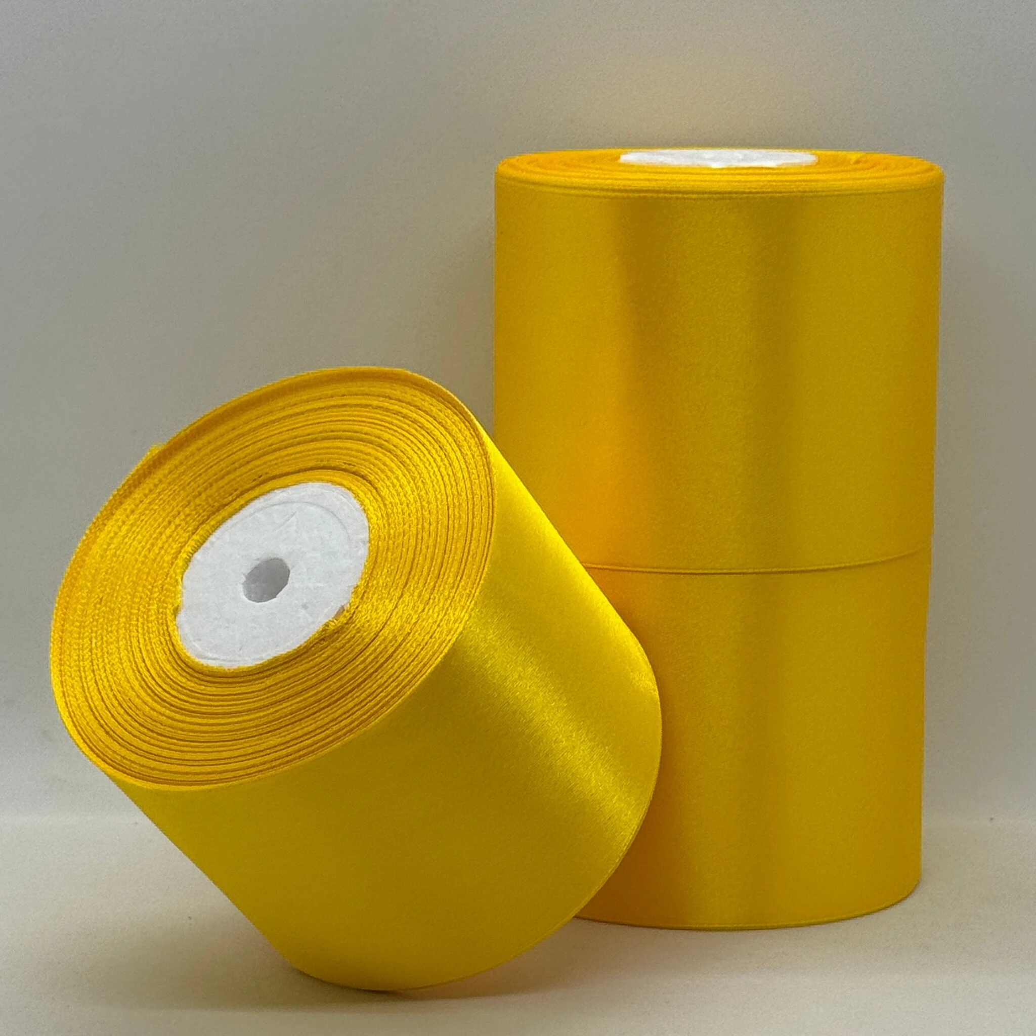 Стрічка атласна 7.5 см (3*36 ярдів), 132 жовтий