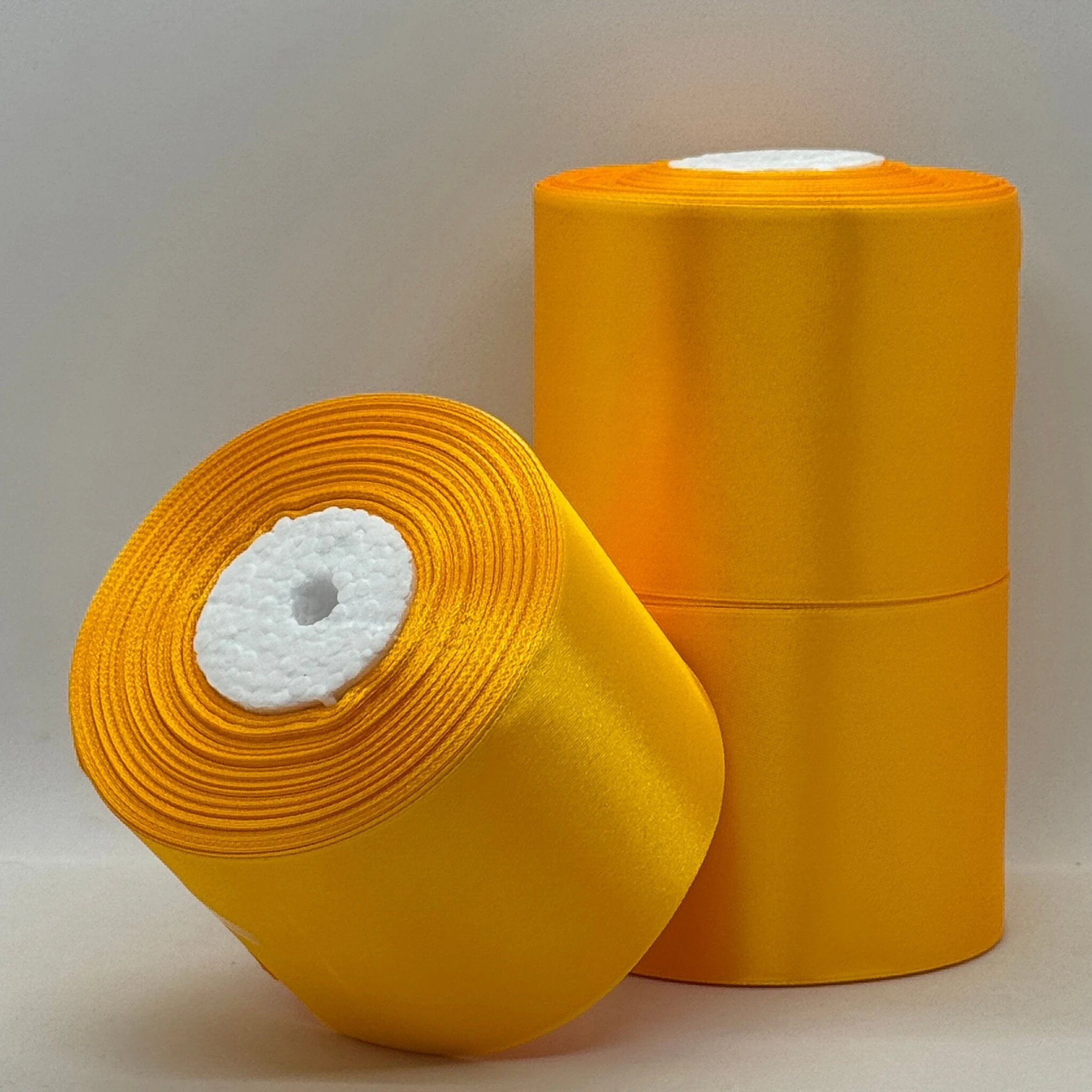 Стрічка атласна 7.5 см (3*36 ярдів), 16 темний жовтий