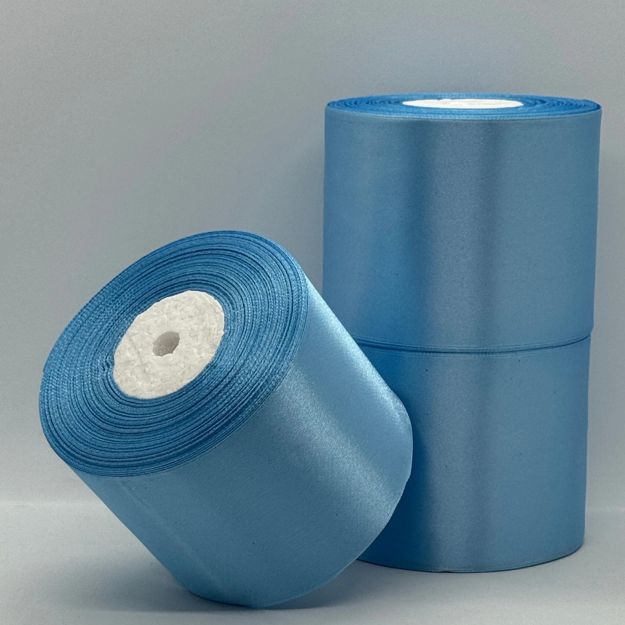 Стрічка атласна 7.5 см (3*36 ярдів), 187 блакитний