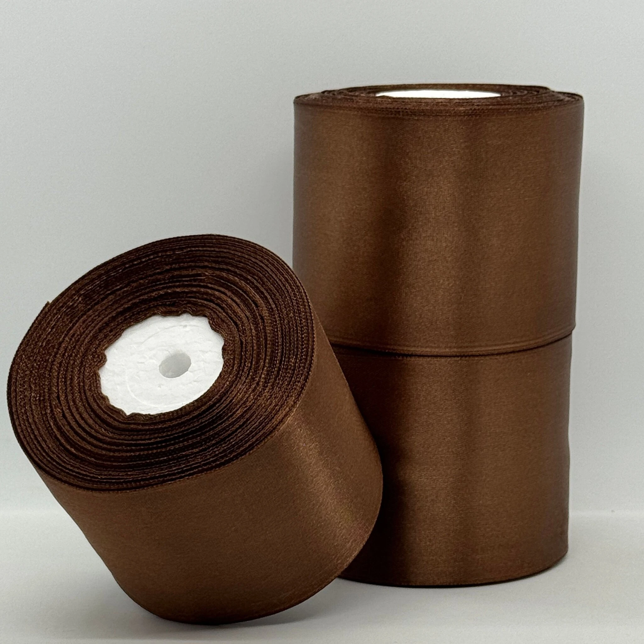 Стрічка атласна 7.5 см (3*36 ярдів), 31 темний коричневий