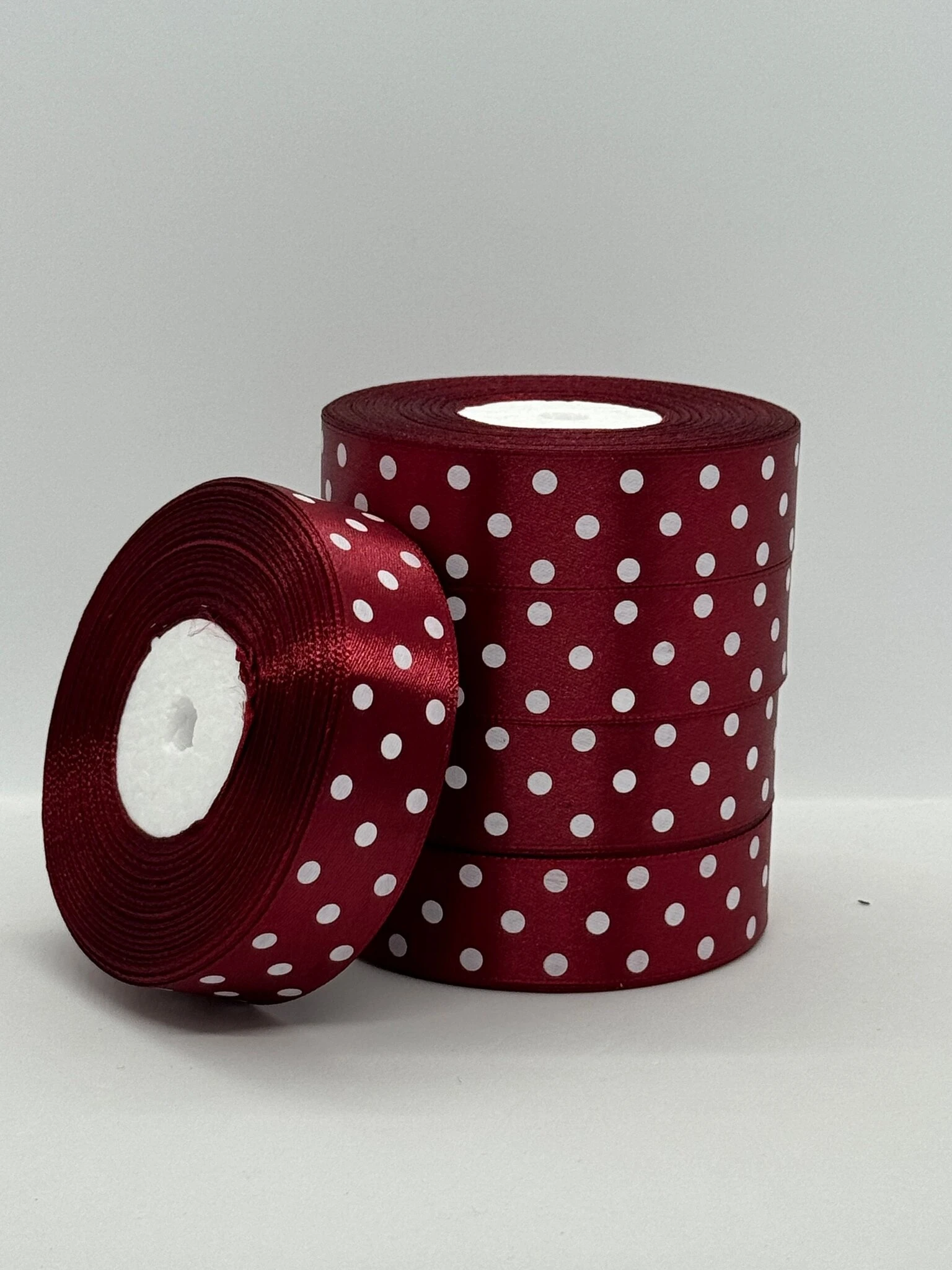 Стрічка атласна в горох 2.5 см (5*36 ярдів), 48 бордовий + білий