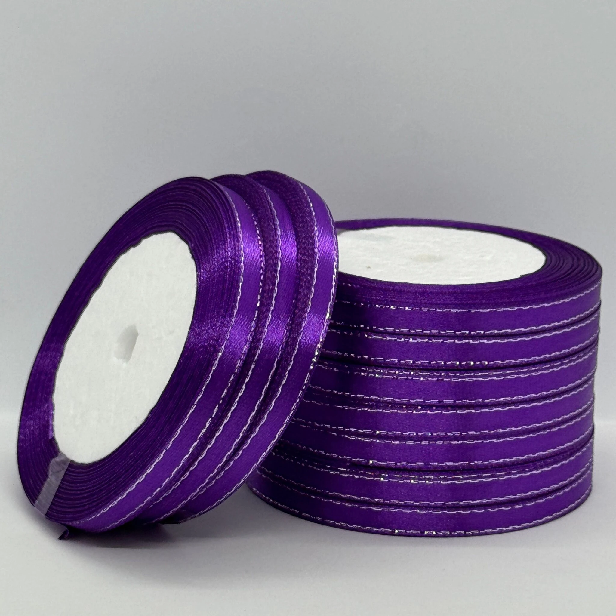 Стрічка атласна з люрекс 0,6 см+срібло (10*25 ярдів), 35 фіолетовий