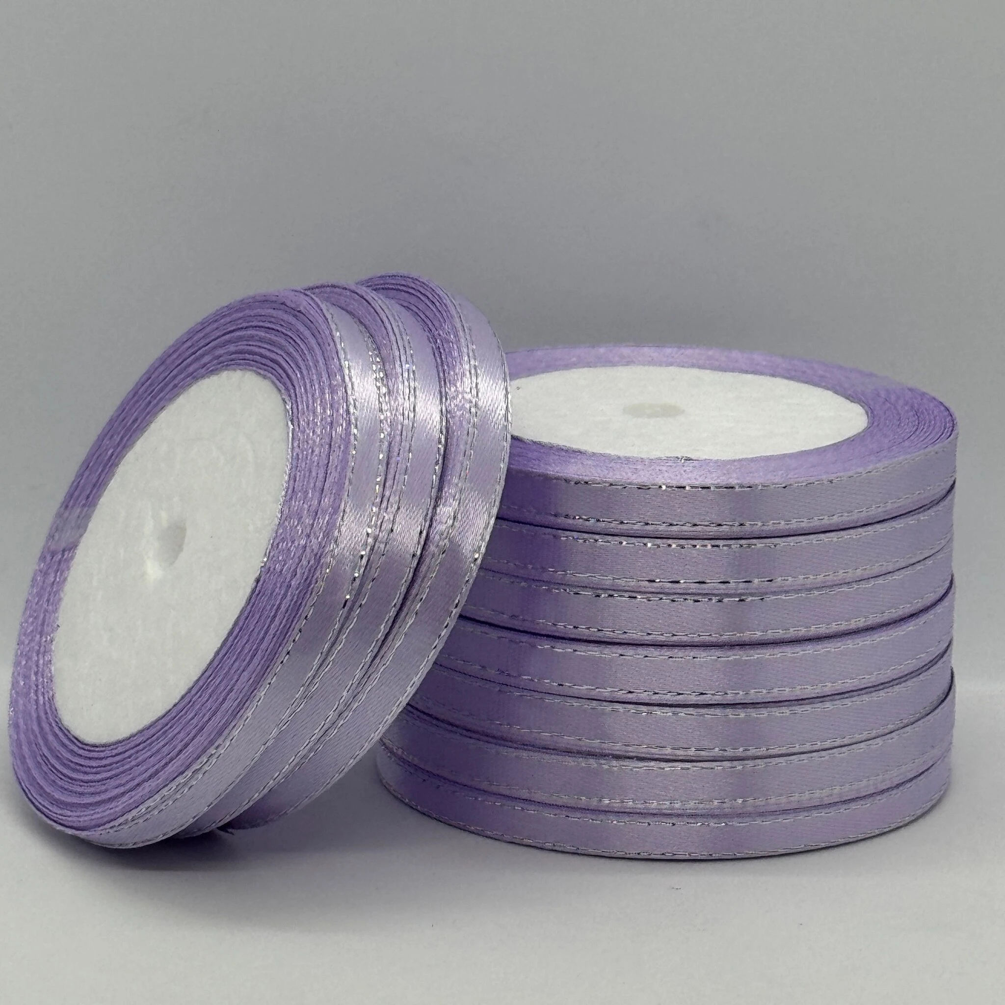 Стрічка атласна з люрекс 0,6 см+срібло (10*25 ярдів), 44 світло фіалковий