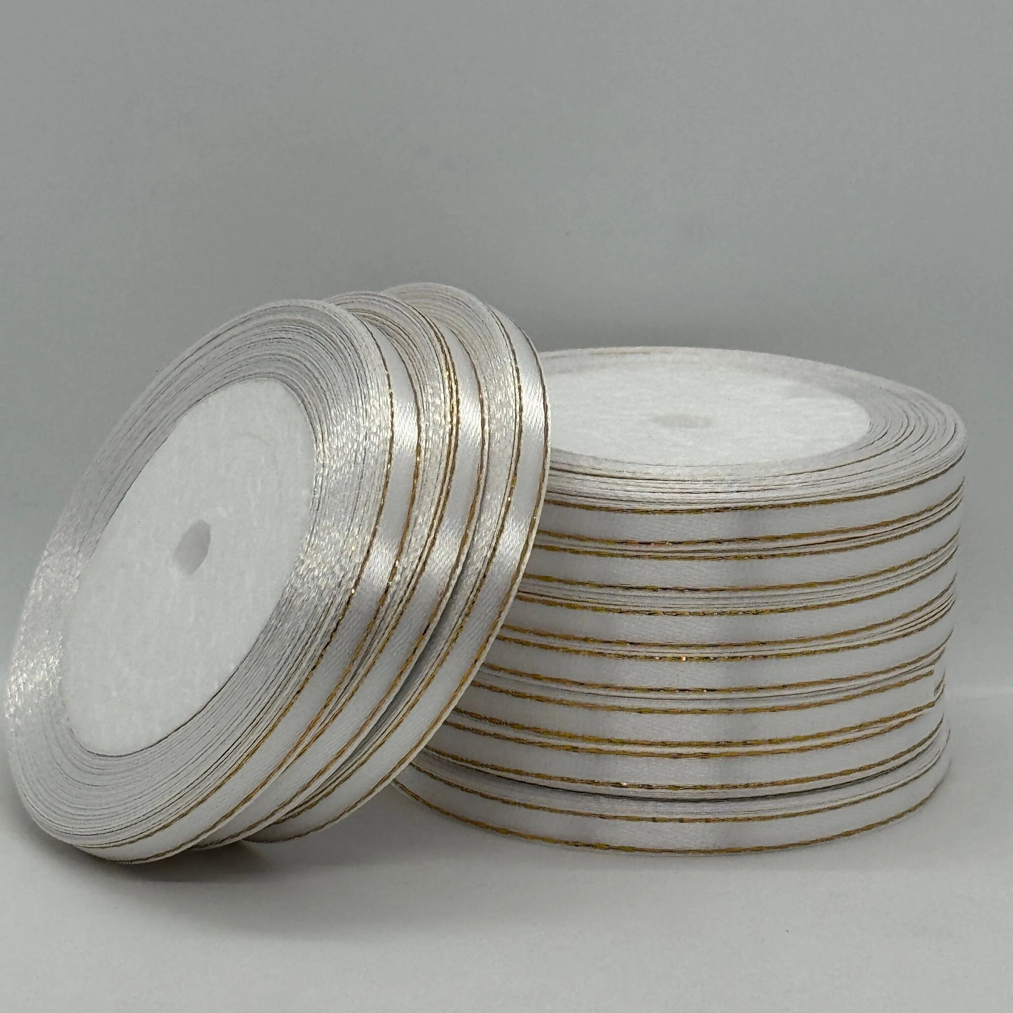 Стрічка атласна з люрекс 0,6 см+золото (10*25 ярдів), 01 білий