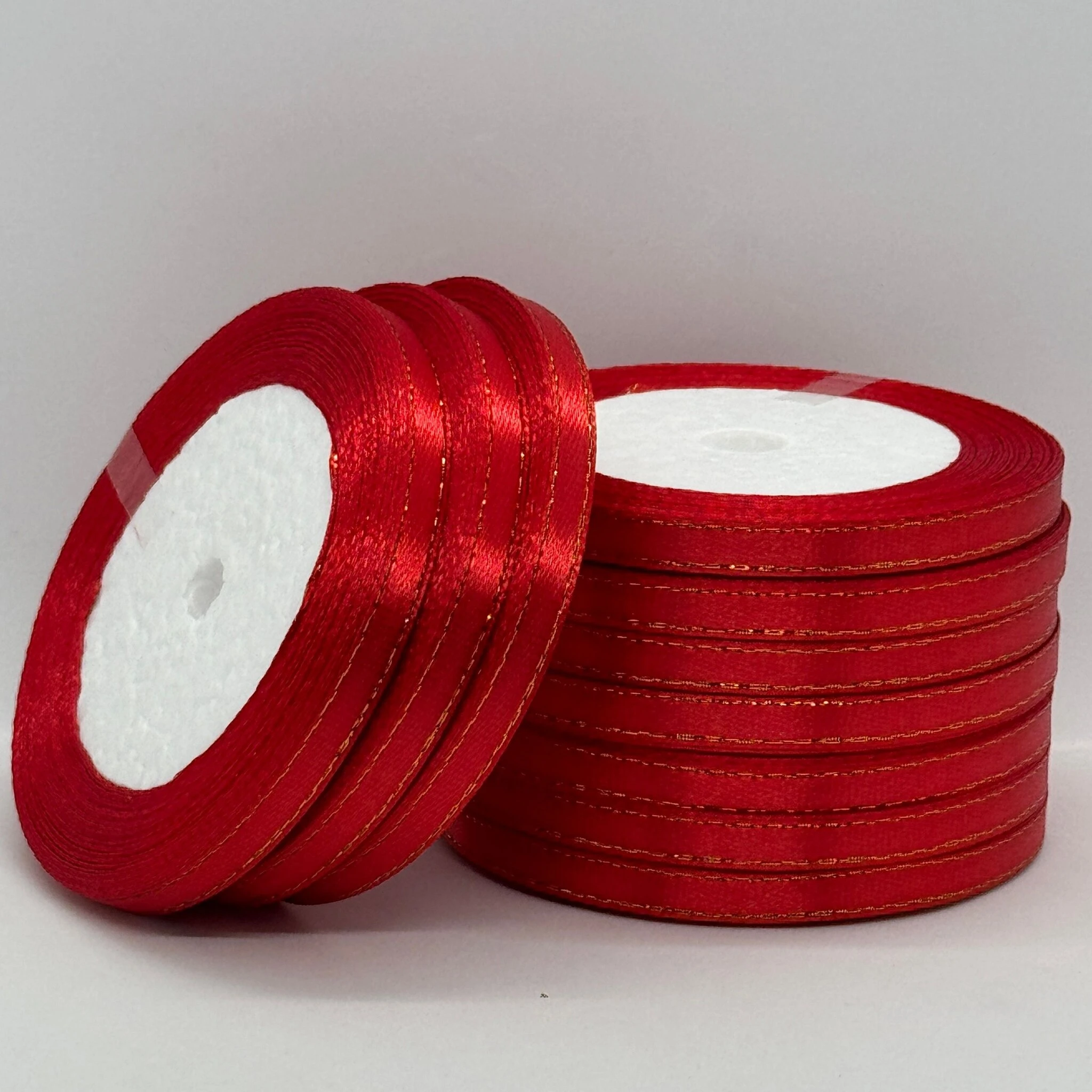 Стрічка атласна з люрекс 0,6 см+золото (10*25 ярдів), 163 червоний
