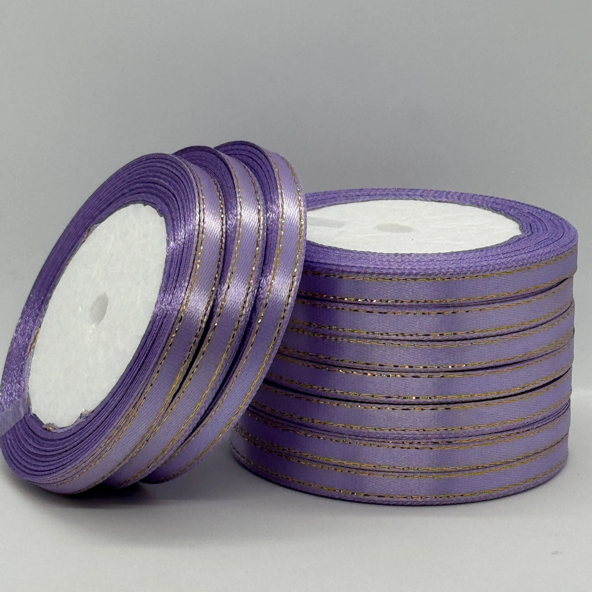 Стрічка атласна з люрекс 0,6 см+золото (10*25 ярдів), 21 фіалковий