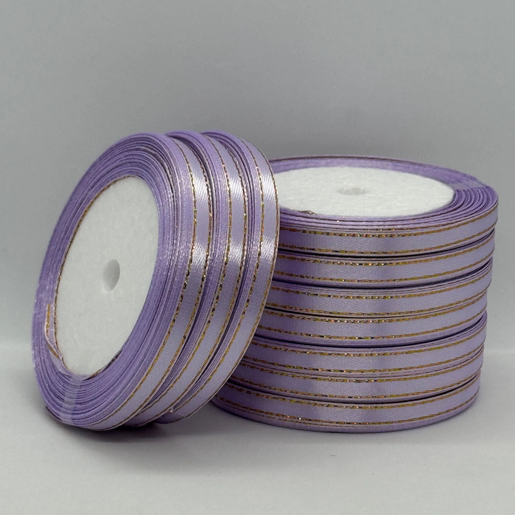 Стрічка атласна з люрекс 0,6 см+золото (10*25 ярдів), 44 світло фіалковий
