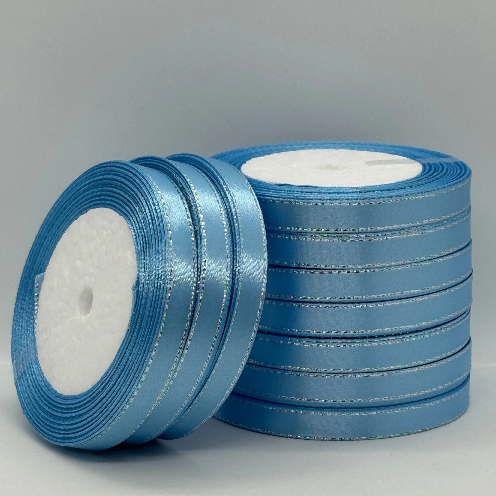 Стрічка атласна з люрекс 1 см+срібло (10*25 ярдів), 187 блакитний