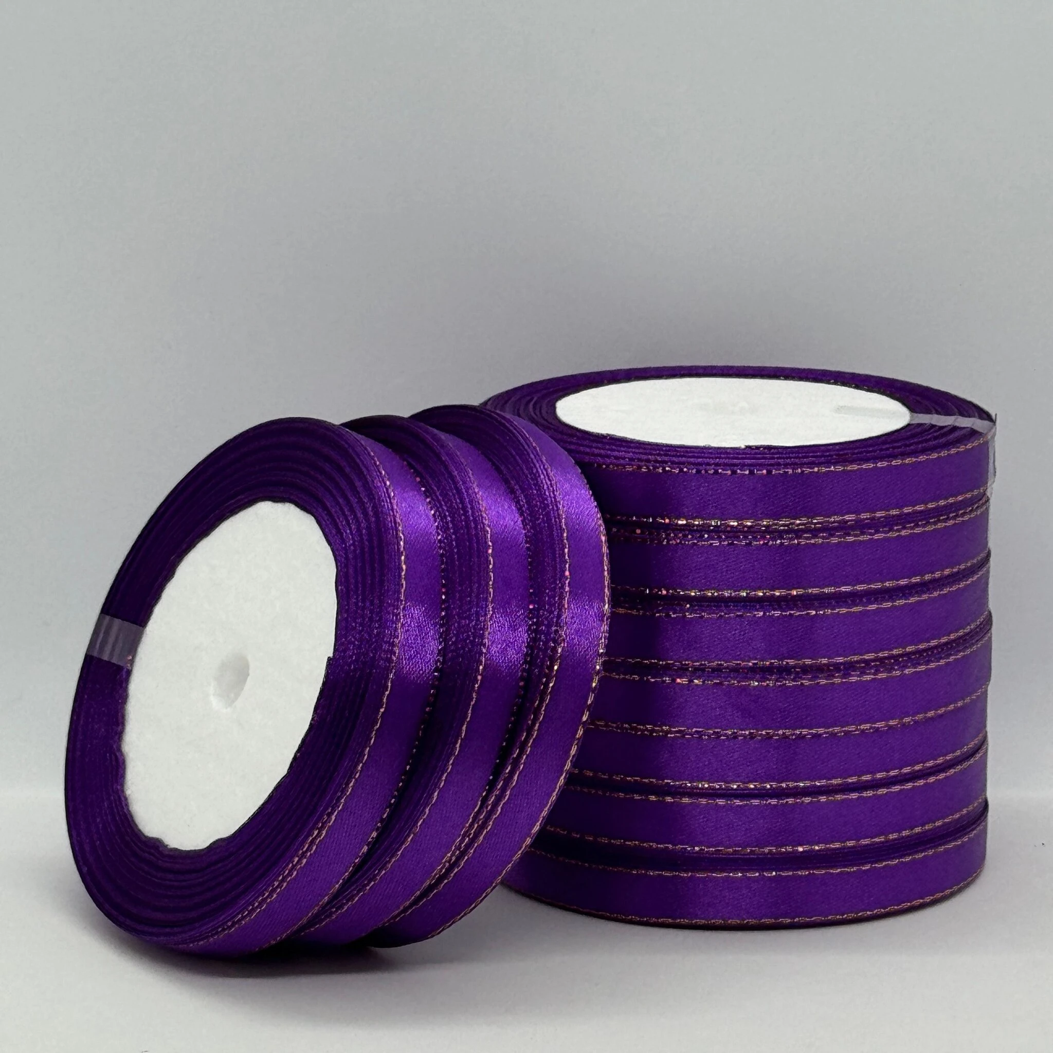 Стрічка атласна з люрекс 1 см+золото (10*25 ярдів), 35 фіолетовий