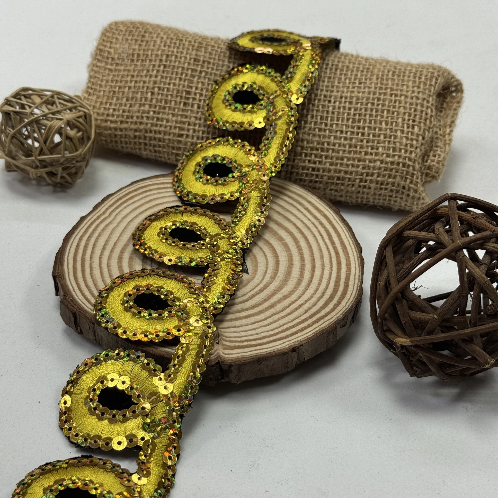 Тасьма клейова – зручний і практичний декоративний матеріал для швидкого оздоблення одягу та текстильних виробів. На зворотному боці тасьми нанесений клейовий шар, що дозволяє легко фіксувати її за допомогою праски без додаткового пришивання.